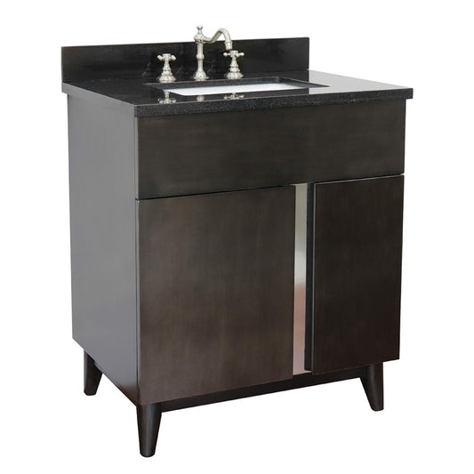 31" Single vanity in Silvery Brown finish with Black Galaxy top and rectangle sink