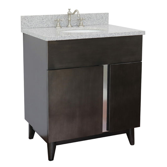 31" Single vanity in Silvery Brown finish with Gray granite top and oval sink