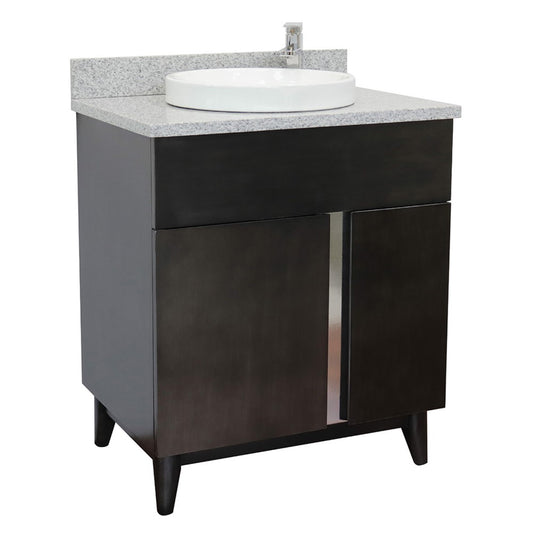 31" Single vanity in Silvery Brown finish with Gray granite top and round sink