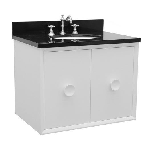 31" Single wall mount vanity in White finish with Black Galaxy top and oval sink