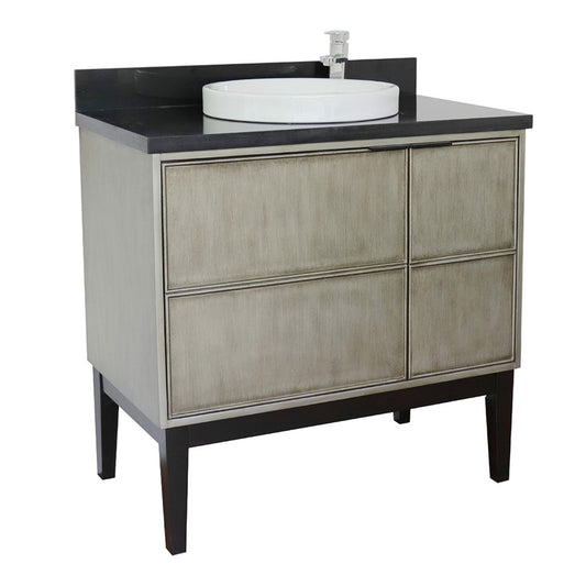 37" Single vanity in Linen Brown finish with Black Galaxy top and round sink