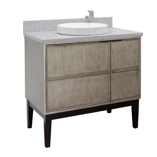 37" Single vanity in Linen Brown finish with Gray granite top and round sink