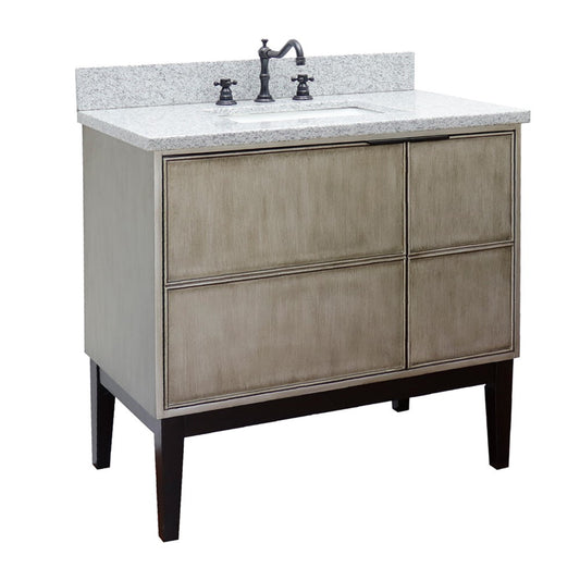 37" Single vanity in Linen Brown finish with Gray granite top and rectangle sink