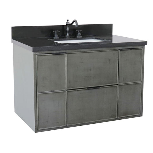 37" Single wall mount vanity in Linen Gray finish with Black Galaxy top and rectangle sink