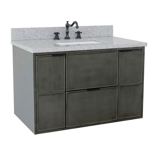 37" Single wall mount vanity in Linen Gray finish with Gray granite top and rectangle sink