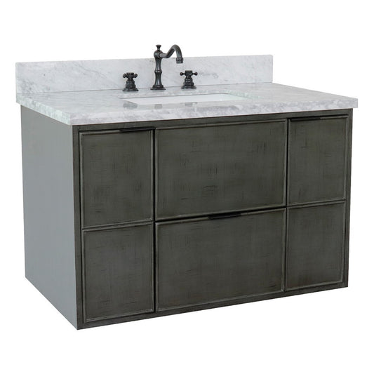 37" Single wall mount vanity in Linen Gray finish with White Carrara top and rectangle sink