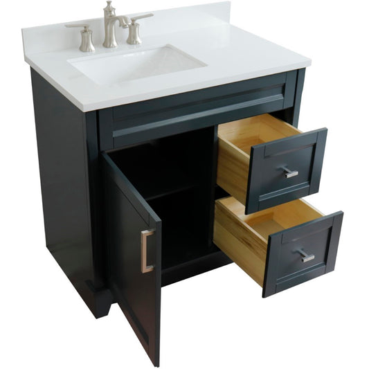 37" Single sink vanity in Dark Gray finish with White engineered stone and Left door/Center sink