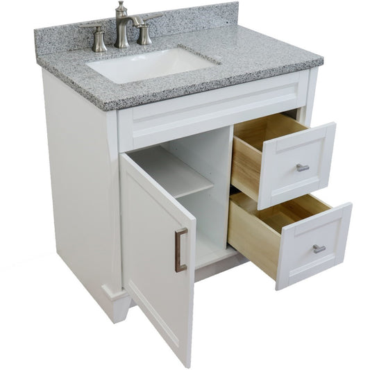 37" Single sink vanity in White finish with Gray granite and Left door/Left sink