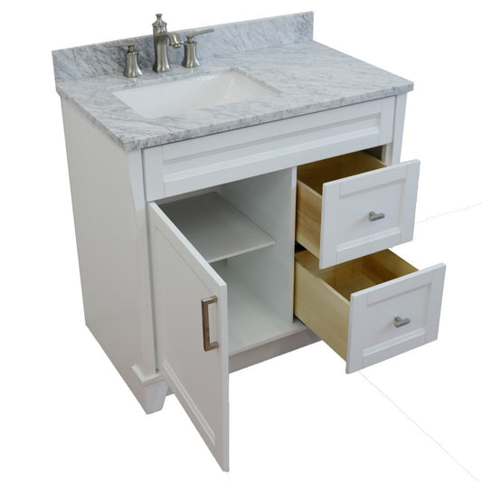 37" Single sink vanity in White finish with White Carrara marble and Left door/Round Center sink