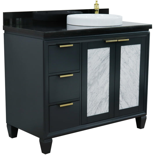 43" Single vanity in Dark Gray finish with Black galaxy and round sink Right door/Right sink