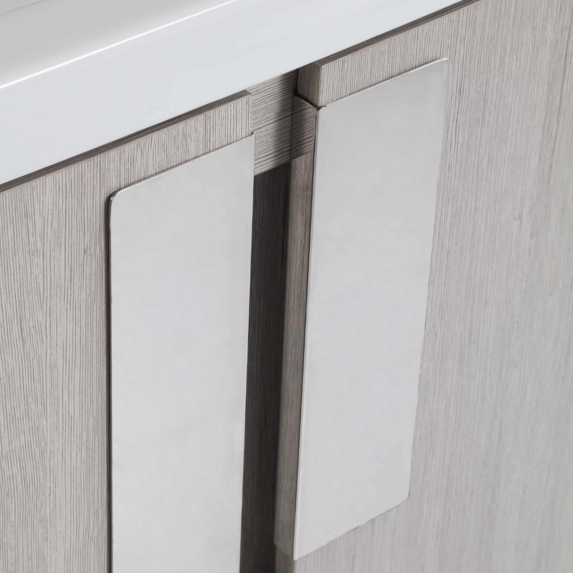 This beautiful modern vanity will make an incredible statement in your bathroom with its clean simplicity. This sleek single sink wall mount vanity is made with solid birch in a gray pine finish & properly sealed to stand against bathroom humidity. Its double doors provide generous hidden storage for towels and toiletries. Dimension: 24Wx18.31Dx25.59H, Wood, Gray Pine, White ceramic sink, Chrome finish hardware, Blum soft close door hinges, Faucet and mirror not included
