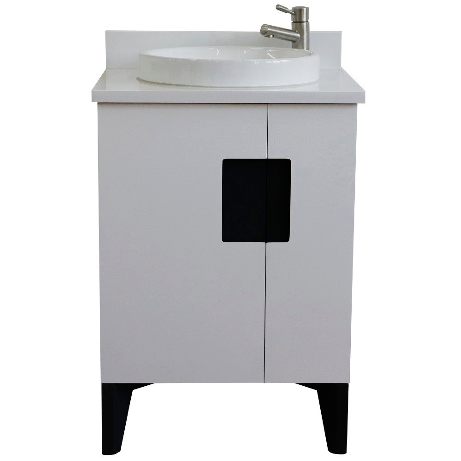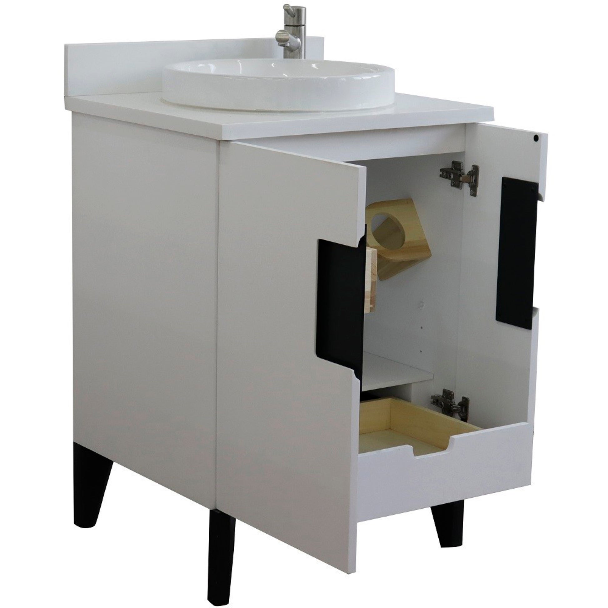 25" Single sink vanity in White finish with White engineered stone and round sink