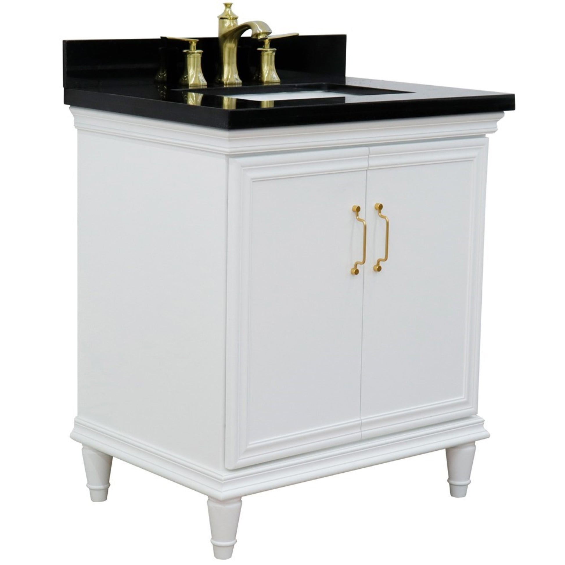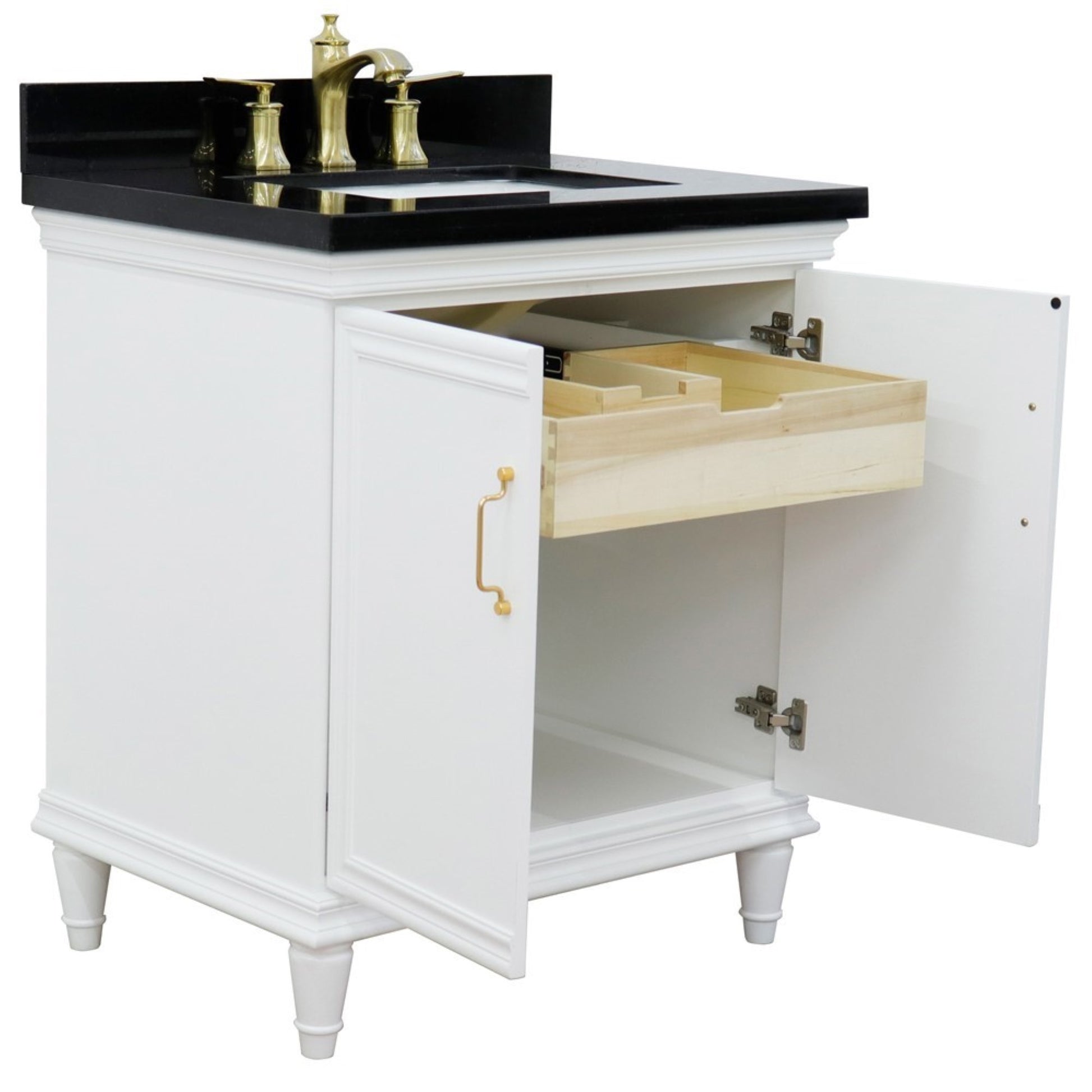 31" Single vanity in White finish with Black galaxy and rectangle sink