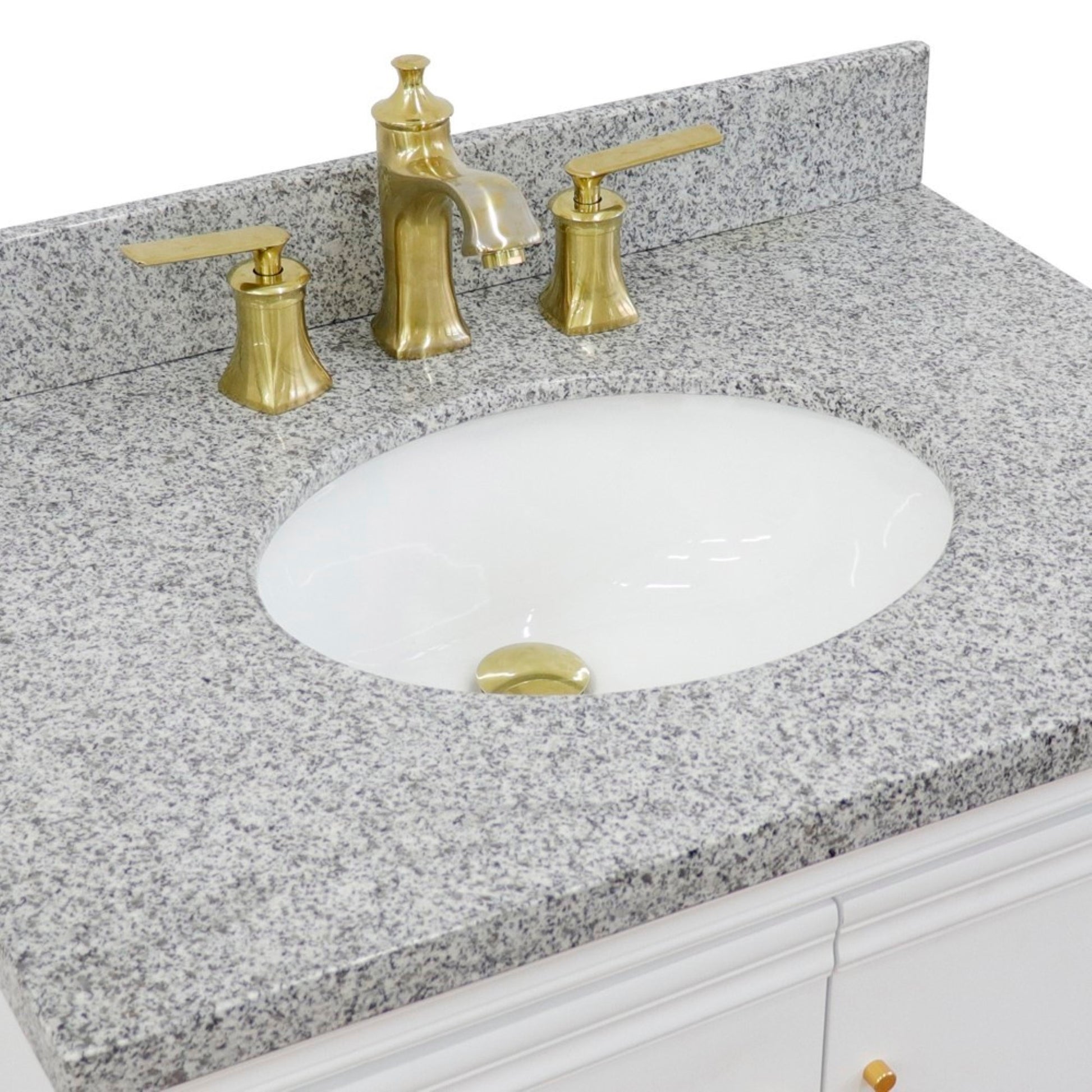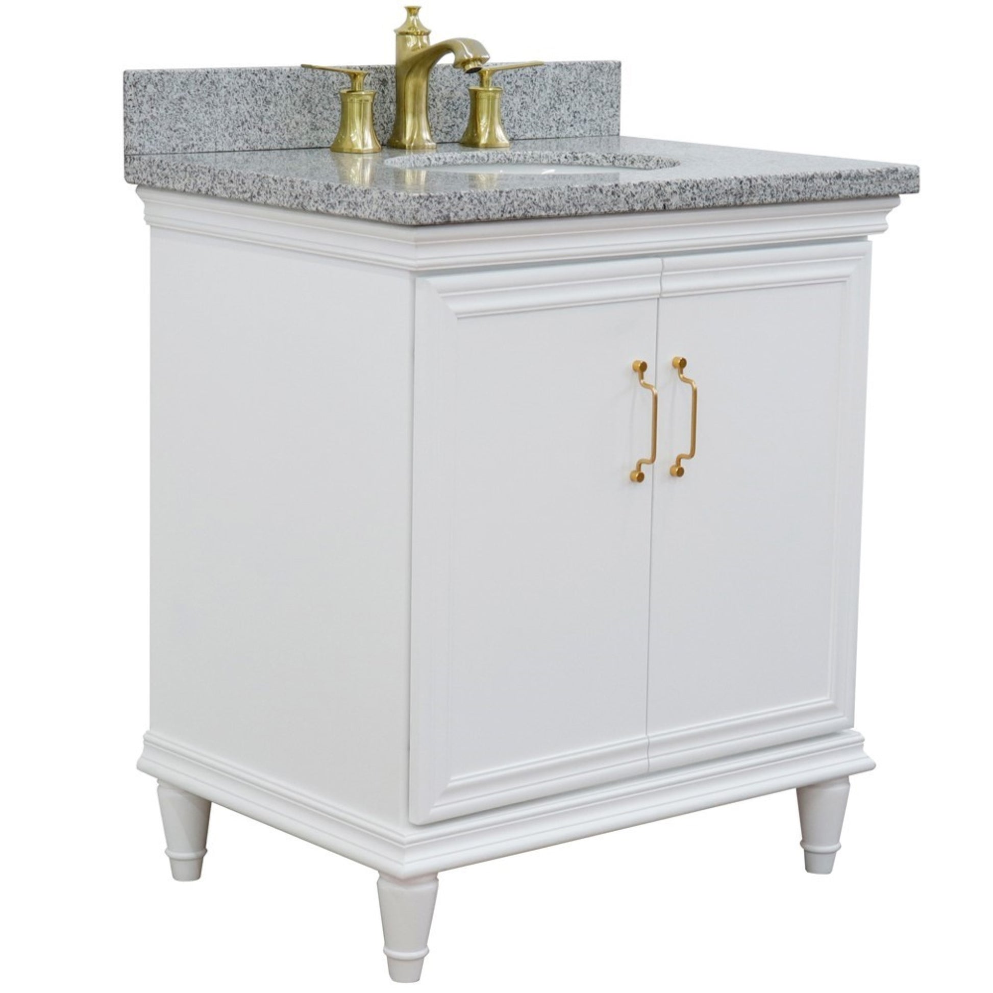 The Forli collection by Bellaterra Home features stunning bathroom vanities that can seamlessly integrate with any home design. The classic simplicity and elegance of this beautifully crafted piece of furniture will be the highly appreciated focal point in your bathroom. The cabinet doors open to a large storage space and an interior drawer that can be configured to fit any personal needs. The hidden drawer is constructed with English dovetail and includes built in wood drawer dividers for easy and functional organization. The drawer is installed with smooth full extension glides which provide durability. This vanity features gold finish hardware and a beautiful counter top that is pre-sealed and polished for added protection. The bathroom vanity top is preinstalled with a white cUPC certified ceramic sink.