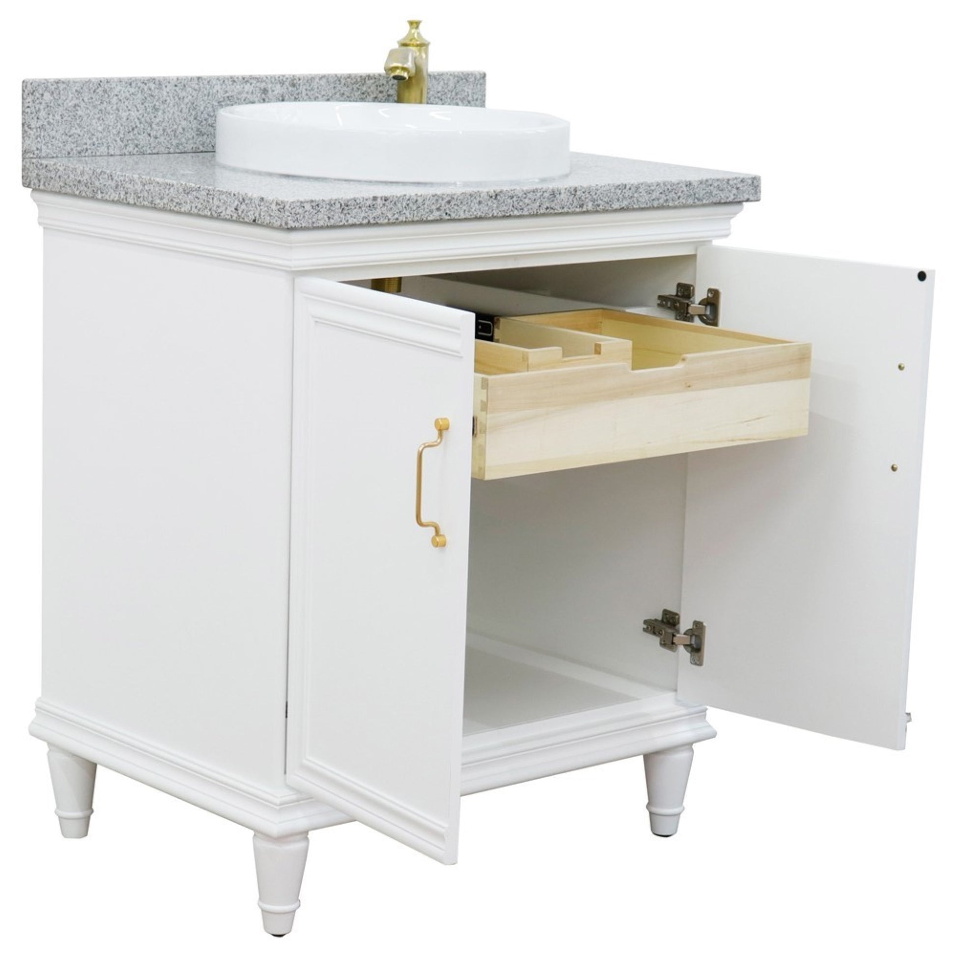 The Forli collection by Bellaterra Home features stunning bathroom vanities that can seamlessly integrate with any home design. The classic simplicity and elegance of this beautifully crafted piece of furniture will be the highly appreciated focal point in your bathroom. The cabinet doors open to a large storage space and an interior drawer that can be configured to fit any personal needs. The hidden drawer is constructed with English dovetail and includes built in wood drawer dividers for easy and functional organization. The drawer is installed with smooth full extension glides which provide durability. This vanity features gold finish hardware and a beautiful counter top that is pre-sealed and polished for added protection. The bathroom vanity top is preinstalled with a white cUPC certified ceramic sink.