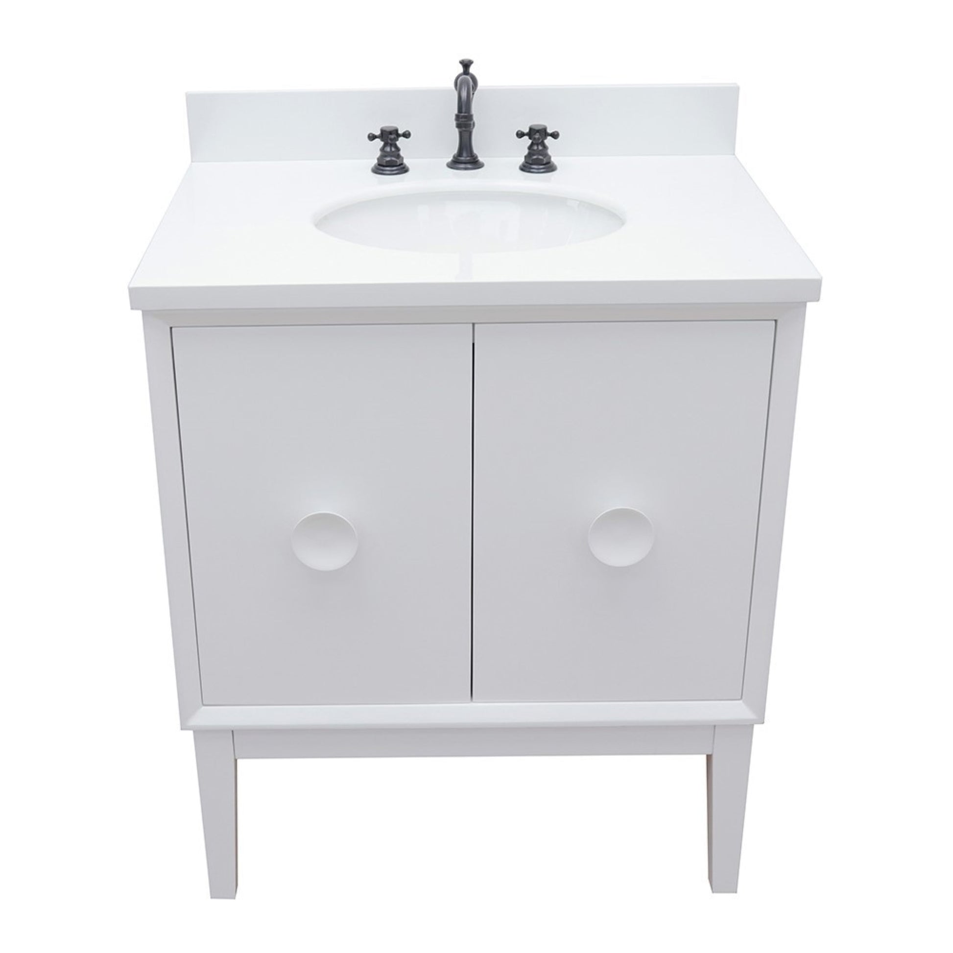 31" Single vanity in White finish with White engineered stone top and oval sink
