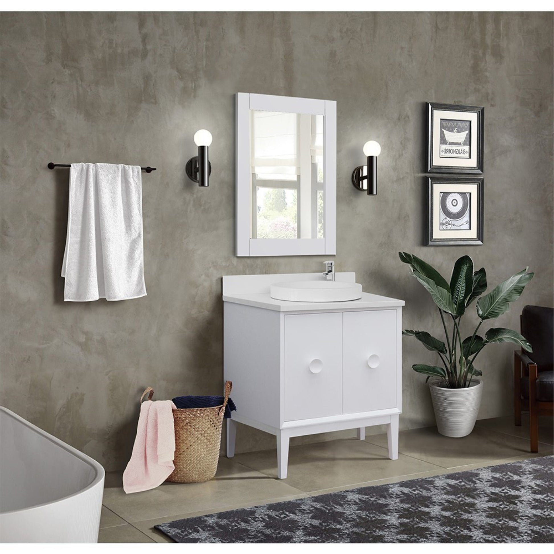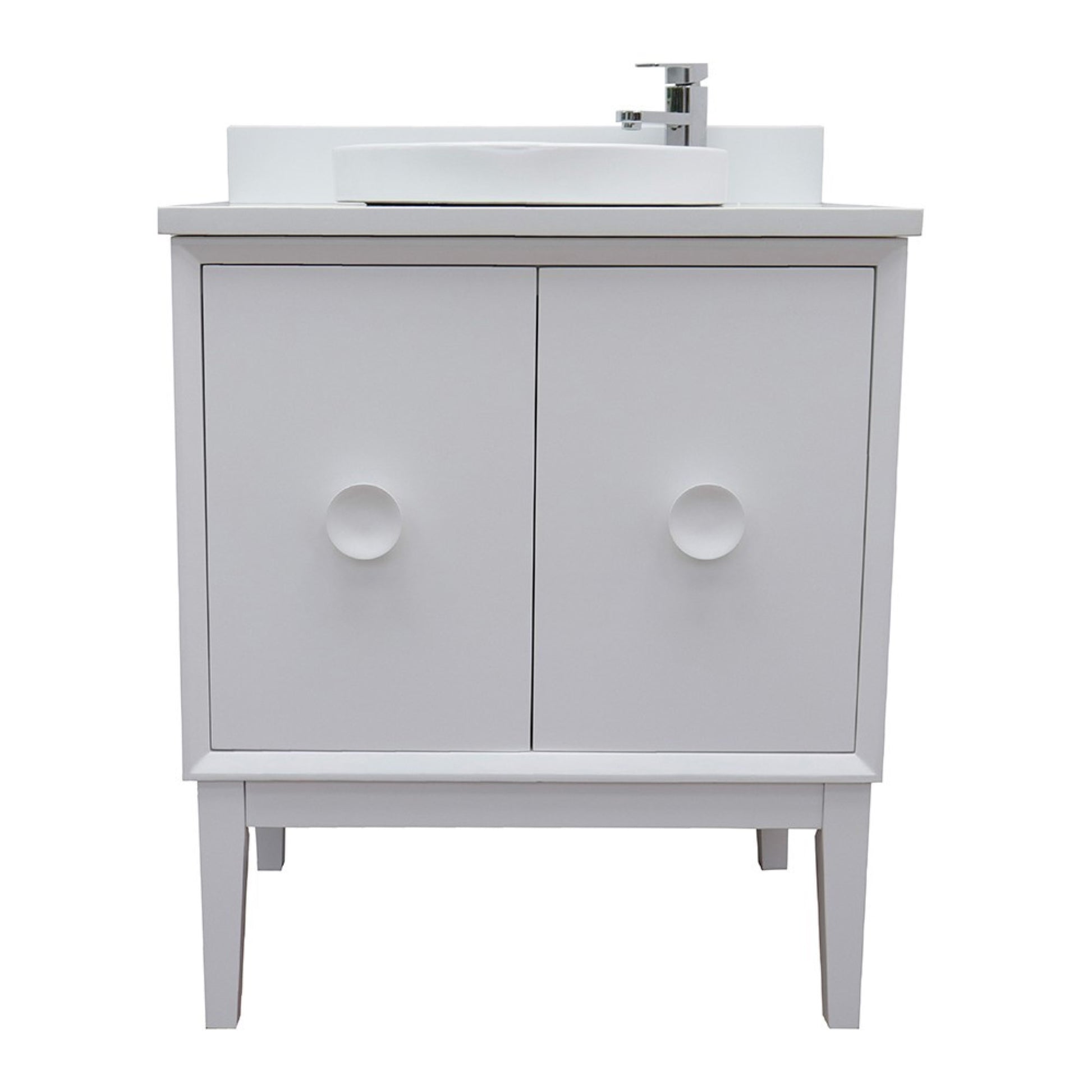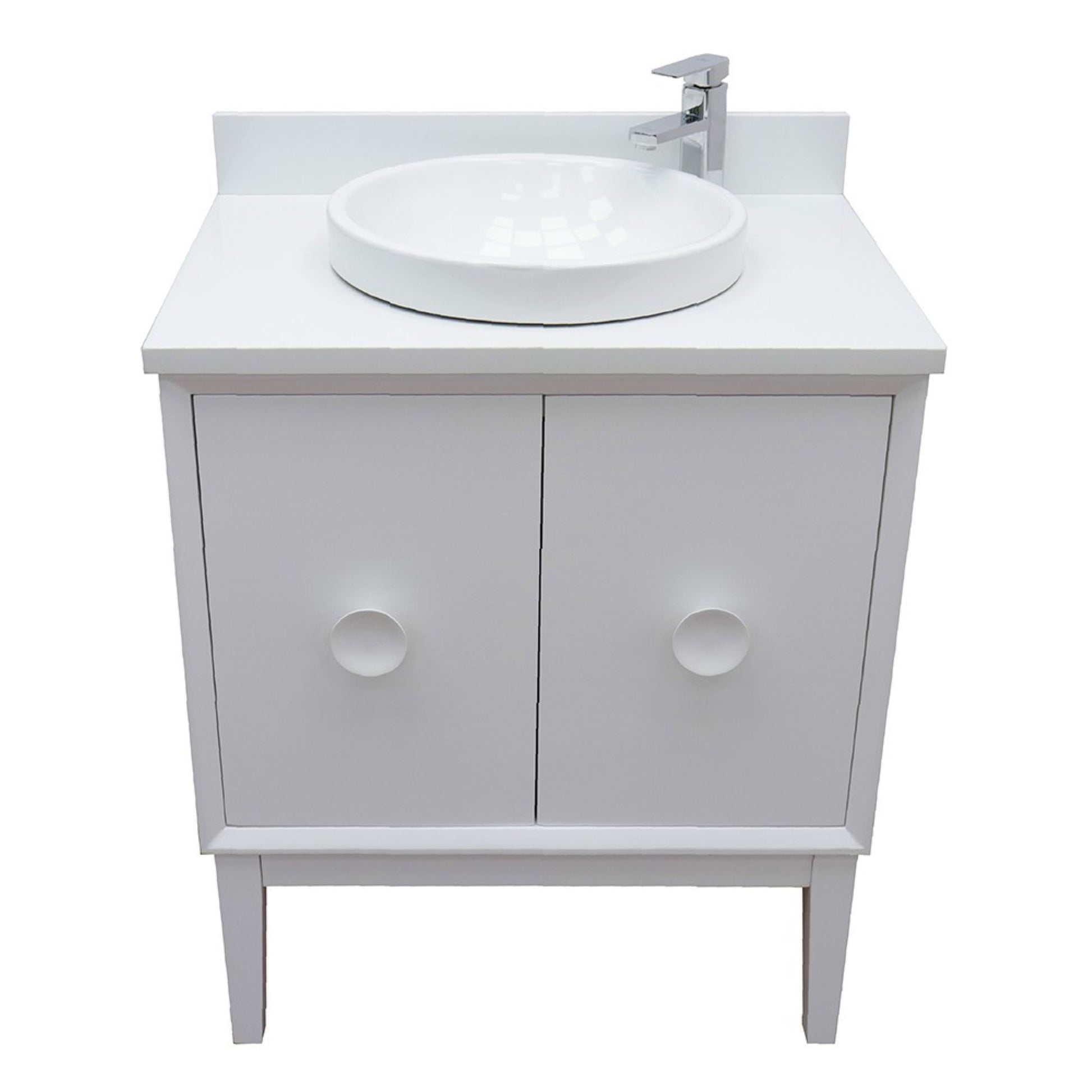 The Stora collection by Bellaterra Home features is a traditional cabinet with a modern twist. It is constructed with solid oak top with birch veneer. On all corners, it has full corner block for stability and additional support for the counter top. It is hand applied with multiple layers of ecofriendly stain and top coat to prevent pealing, cracking and fading. The interior finish is consistent throughout and matches the exterior finish. This cabinet offers immaculate styling while concealing a fantastic amount of storage behind a set of doors. The interior drawer is constructed with English dovetail and smooth full extension glide. The eye-catching 3.5” door handles enhance the simple yet elegant look of this vanity offers. This collection is offered in two configurations, wall mount or freestanding, and also, a variety of finishes. Each cabinet is configured to work with our variety of countertops or any standard sized tops. This vanity is available in: White, Aqua blue. This elegant bathroom vanity top features a 1.3” thick White engineered stone preinstalled with a white cUPC certified Semi-recessed round ceramic sink and a matching 4 in. H. backsplash is available for purchase to complete the utmost beauty and functionality. It will easily match many home interiors. The vanity top is pre-drilled with 1 hole for a single handle faucet and fits directly on top of a standard vanity cabinet (sold separately). Bellaterra Home’s counter tops are pre-sealed and polished for added protection. All genuine stone material has its variation of veining pattern and color; every top will be slightly different.
