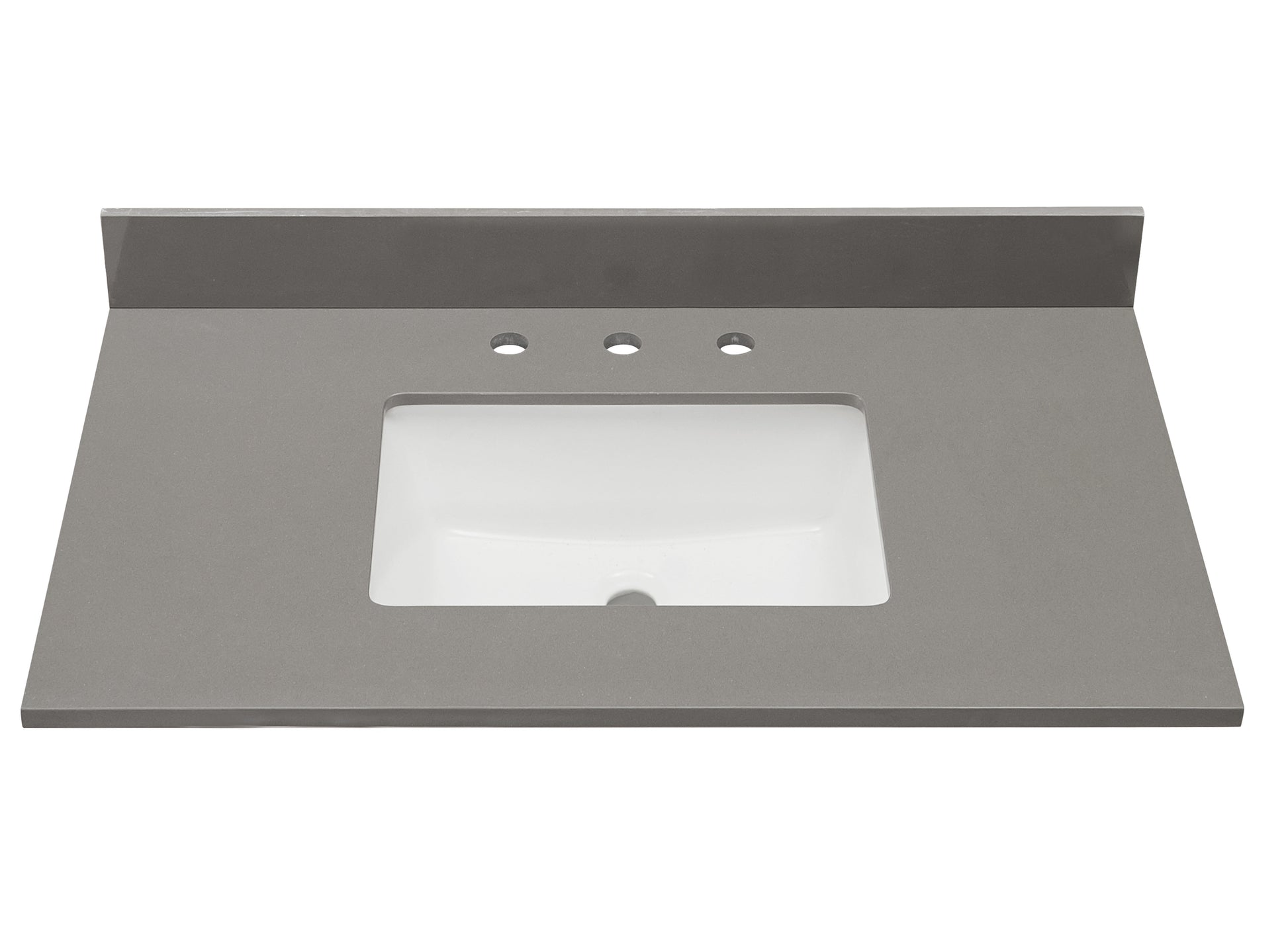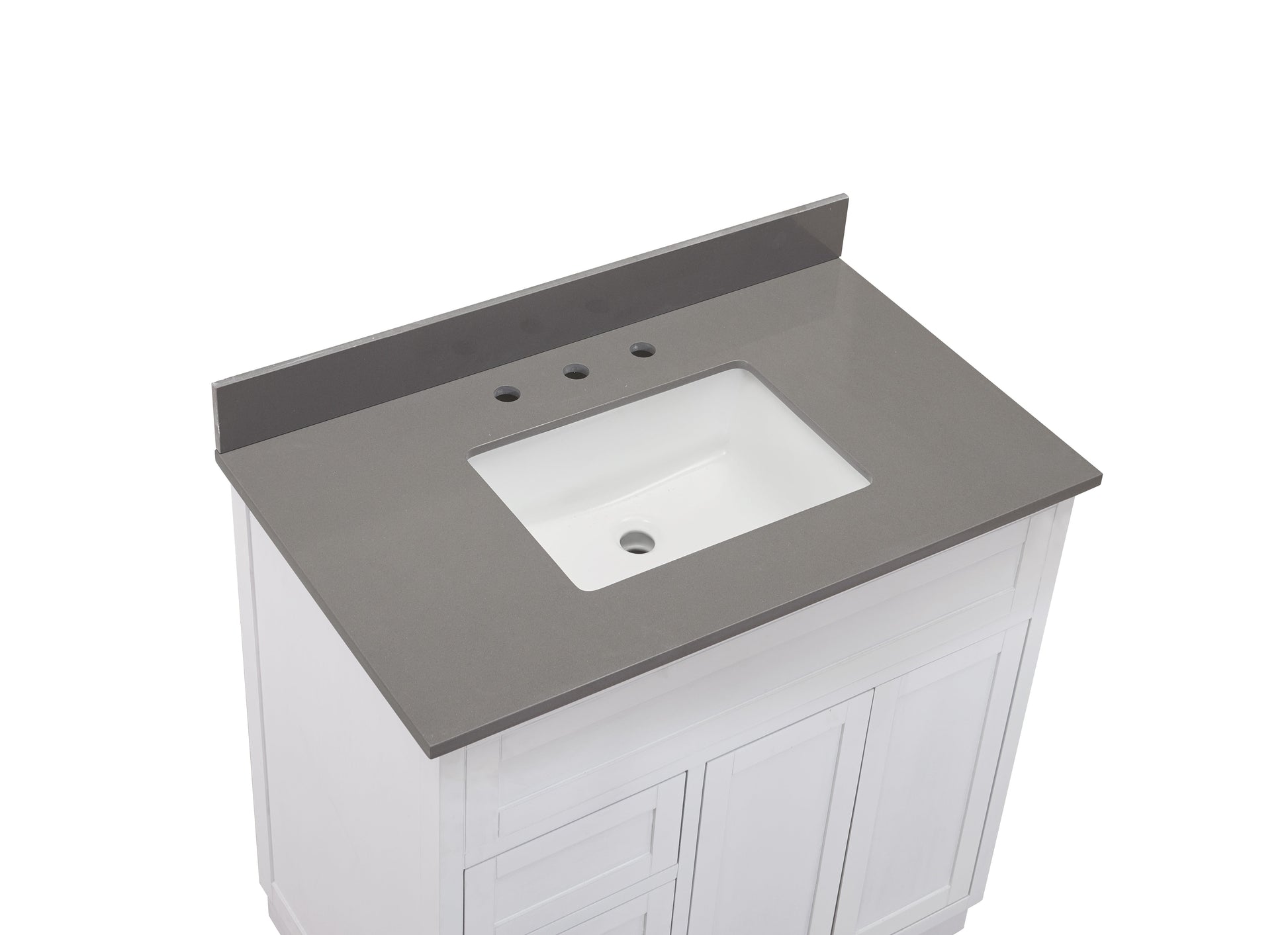 37" Composite Stone Vanity Top in Concrete Grey with White Sink