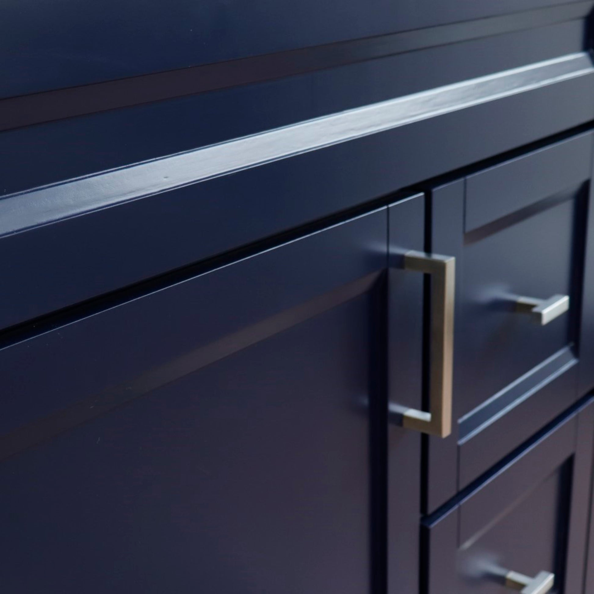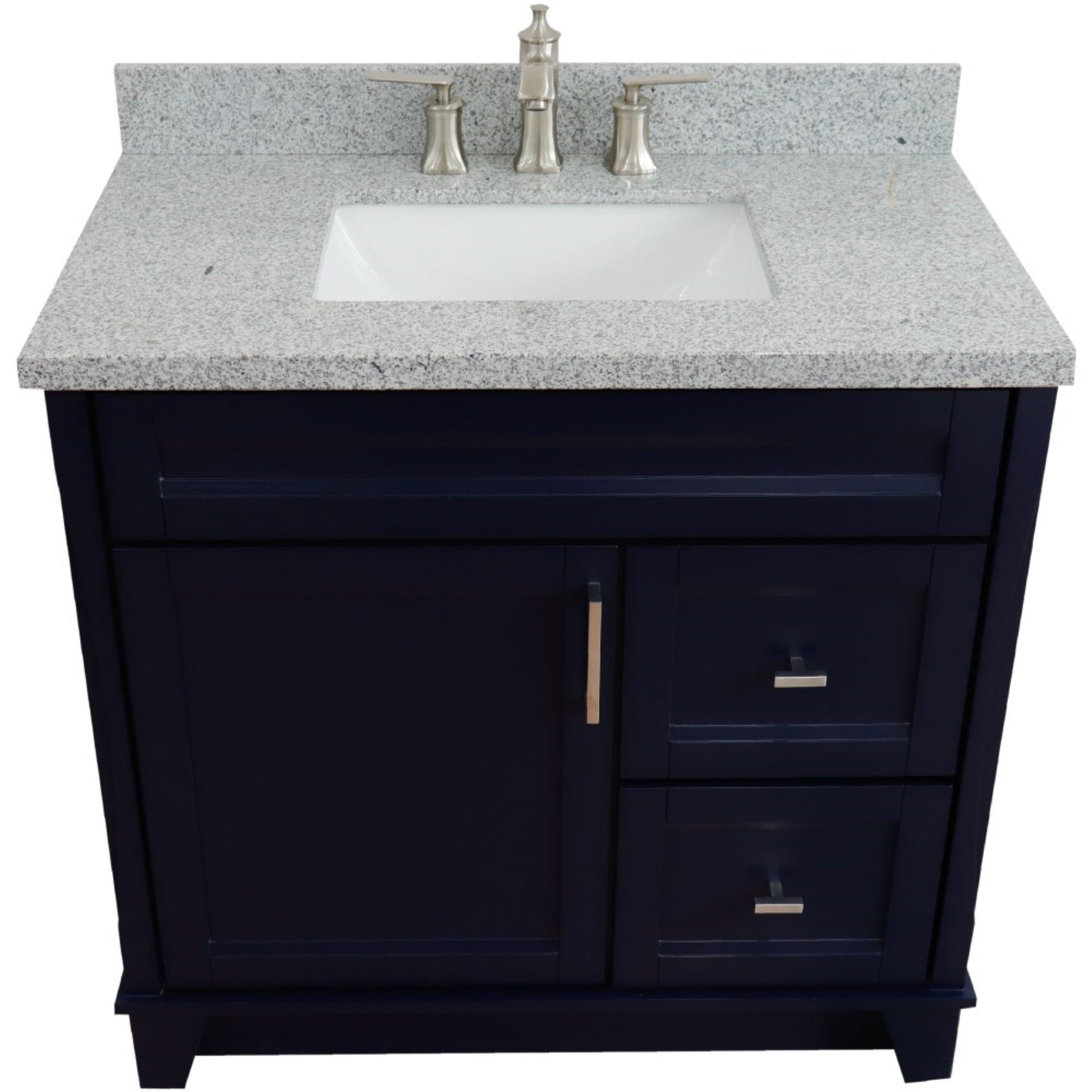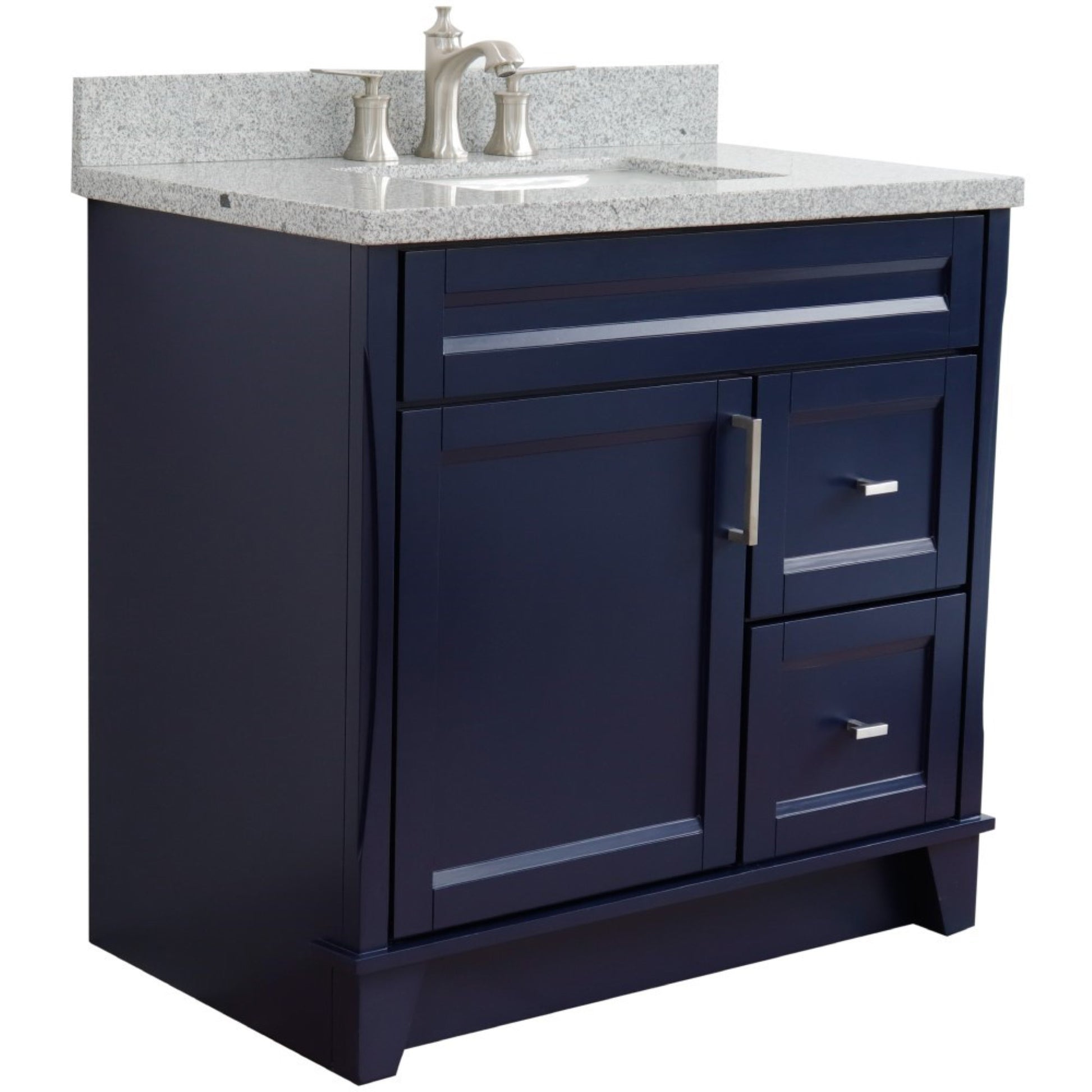 37" Single sink vanity in Blue finish with Gray granite and Left door/Center sink