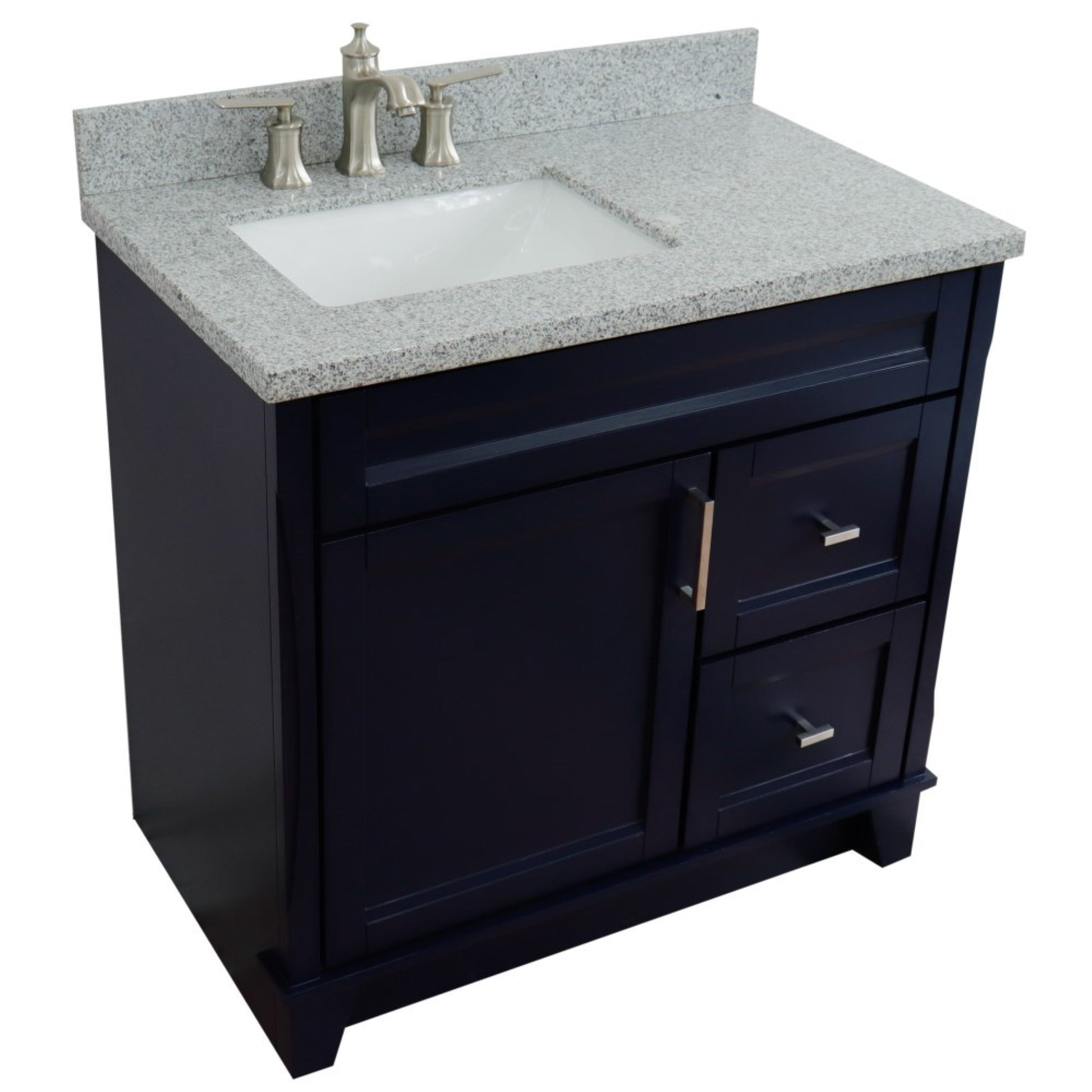 37" Single sink vanity in Blue finish with Gray granite and Left door/Left sink