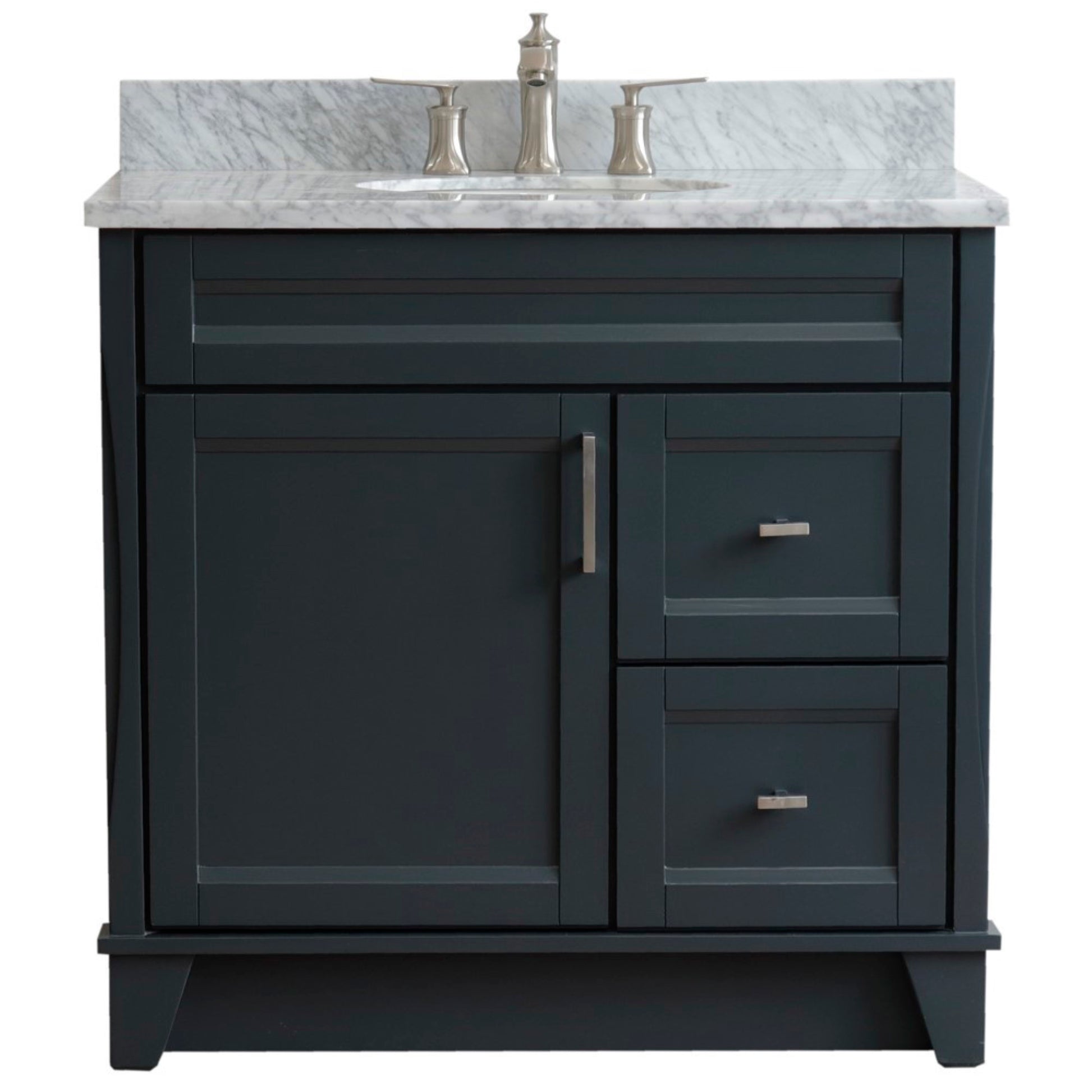 37" Single sink vanity in Dark Gray finish with White Carrara marble and Left door/Center sink