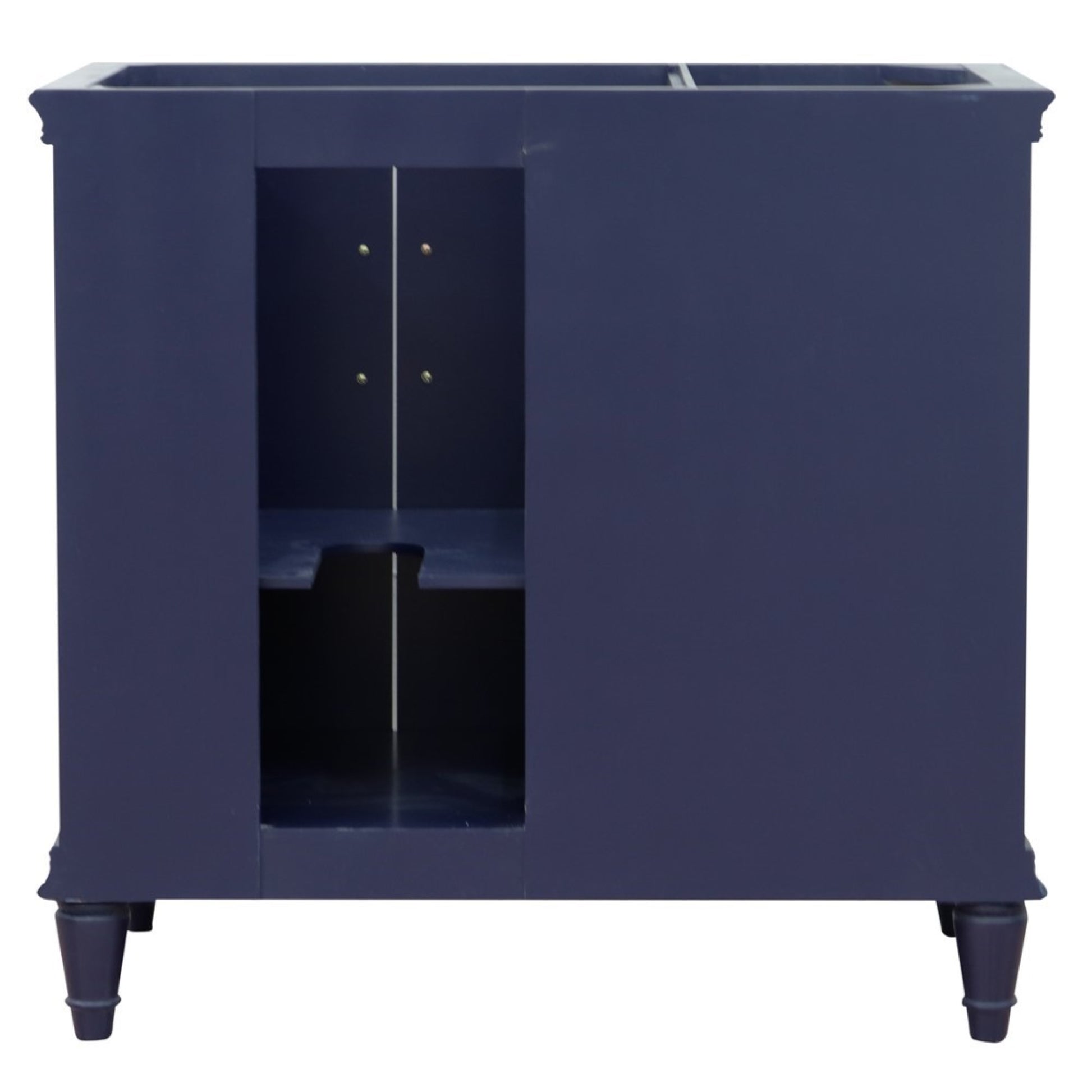 37" Single vanity in Blue finish with Black galaxy and oval sink Right door/Right sink