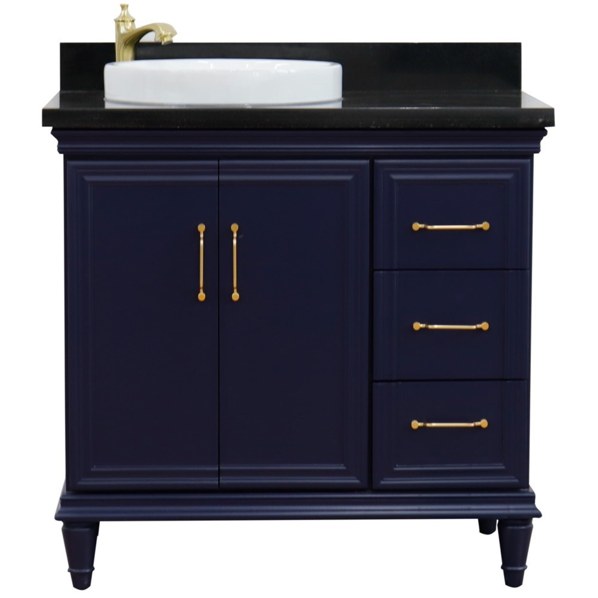 37" Single vanity in Blue finish with Black galaxy and round sink Left door/Left sink