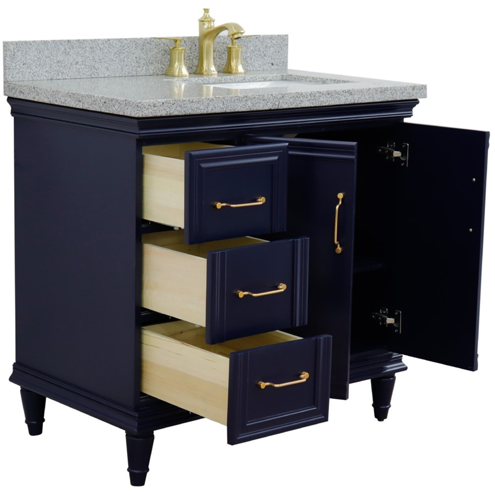 37" Single vanity in Blue finish with Gray granite and rectangle sink Right door/Right sink