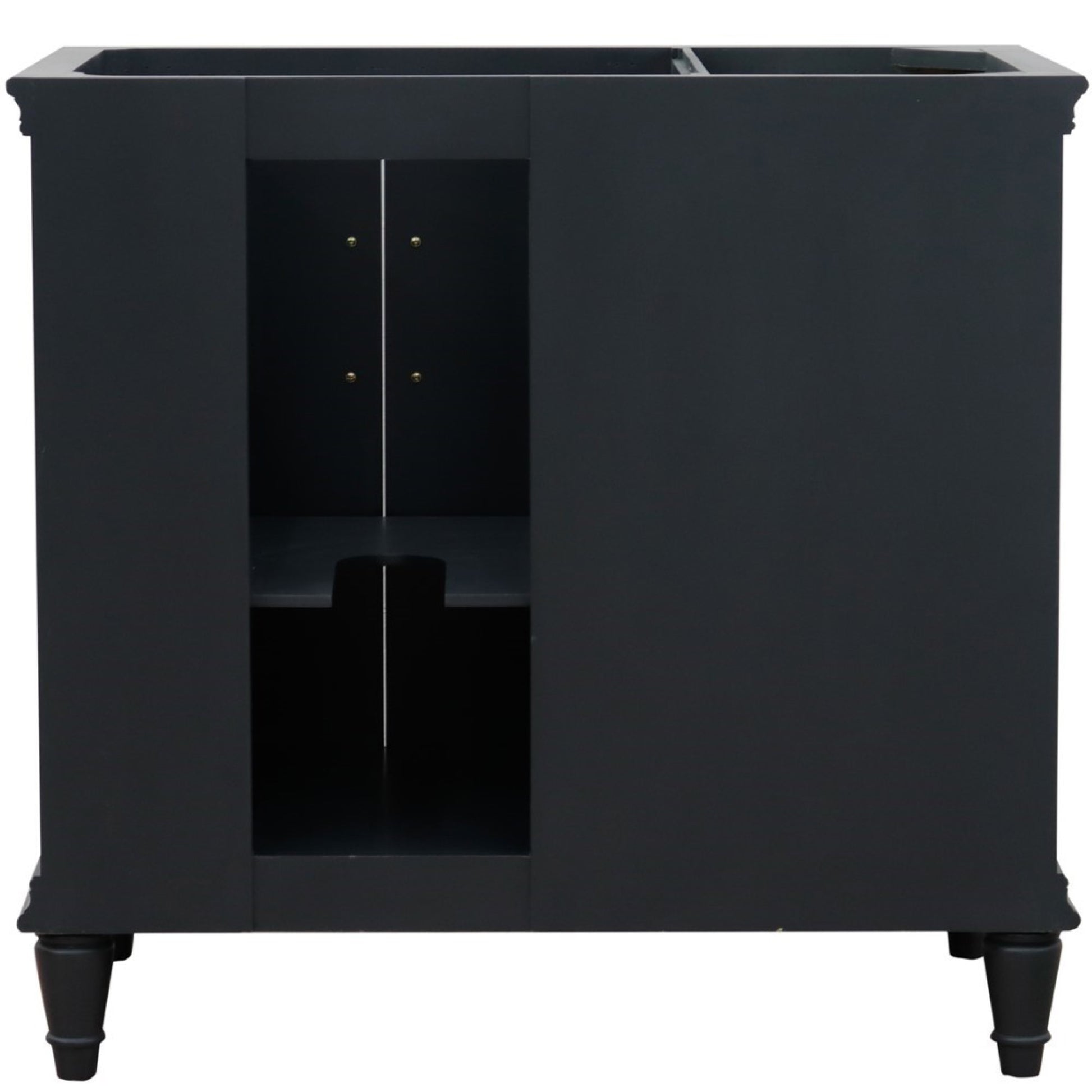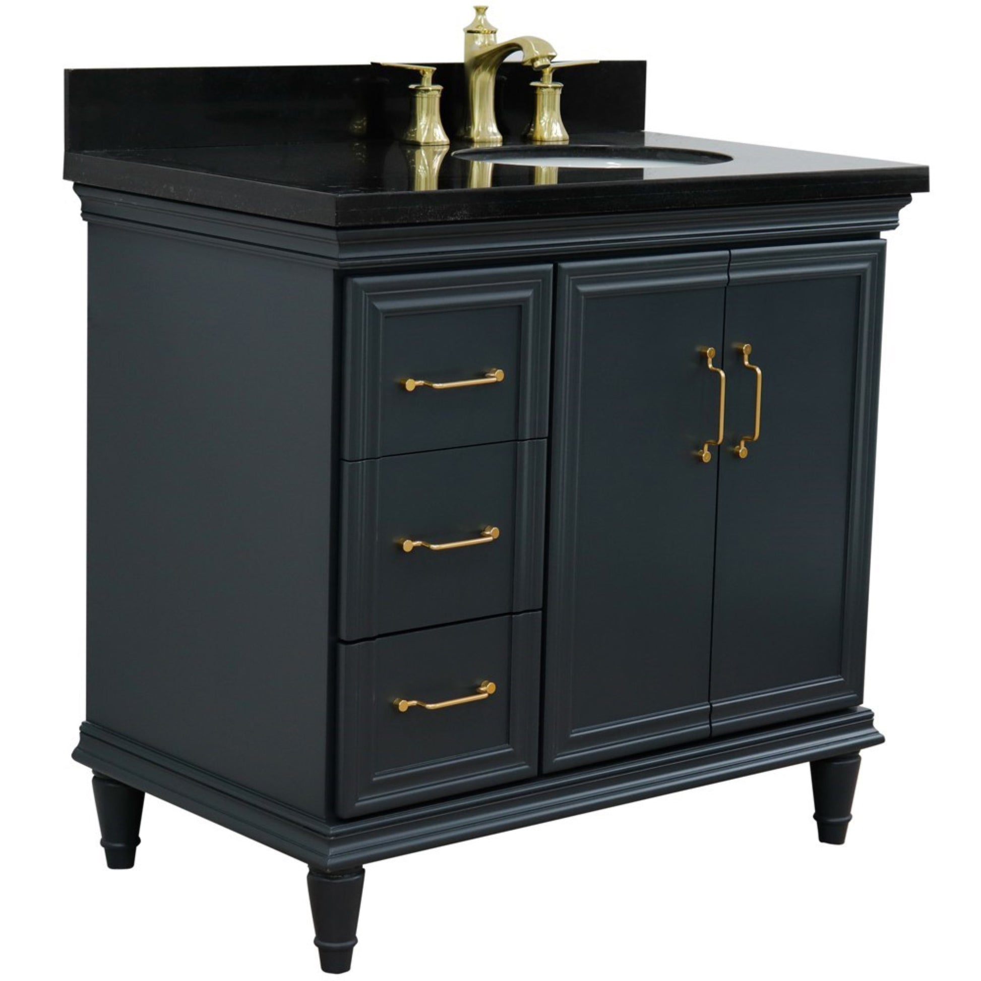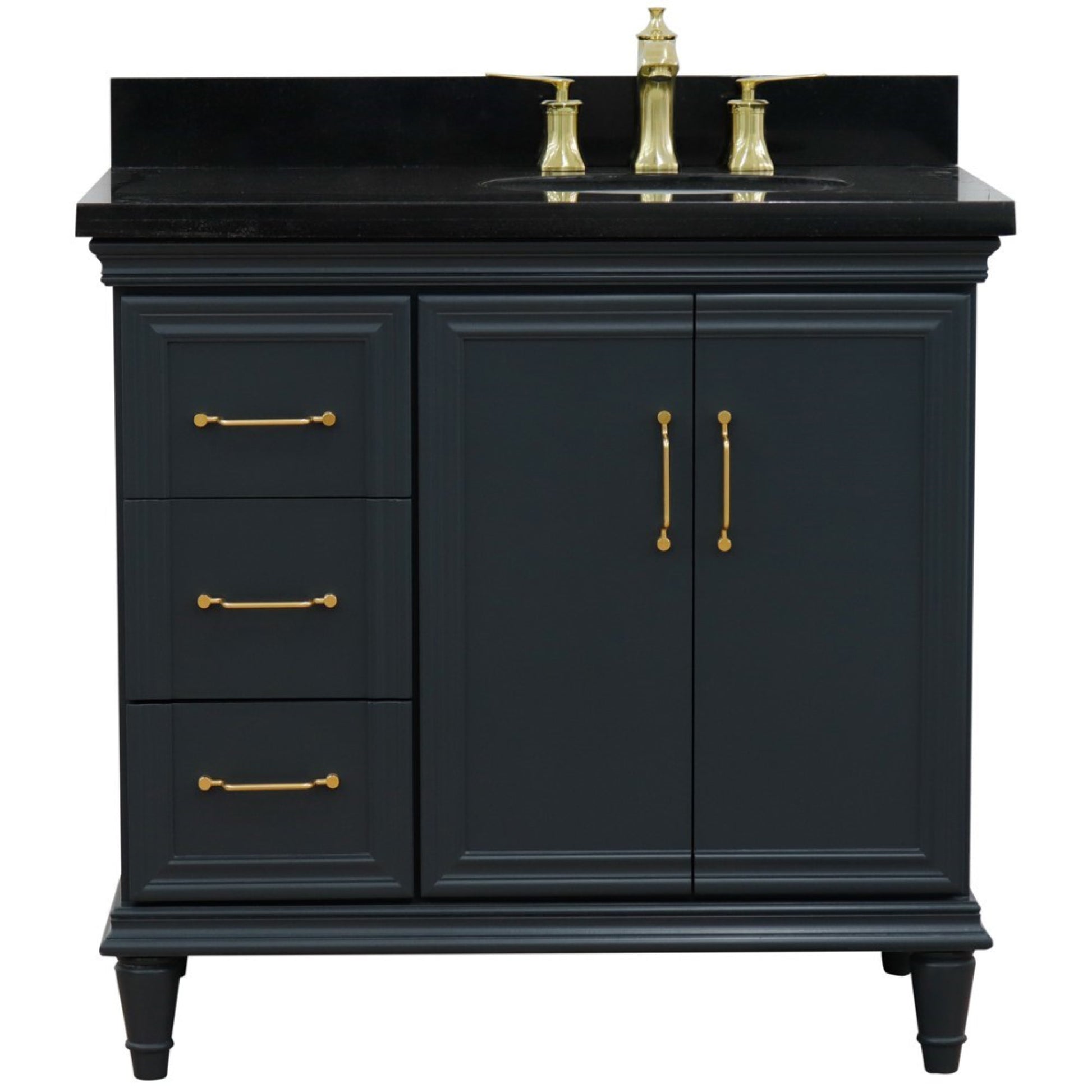 37" Single vanity in Dark Gray finish with Black galaxy and oval sink Right door/Right sink