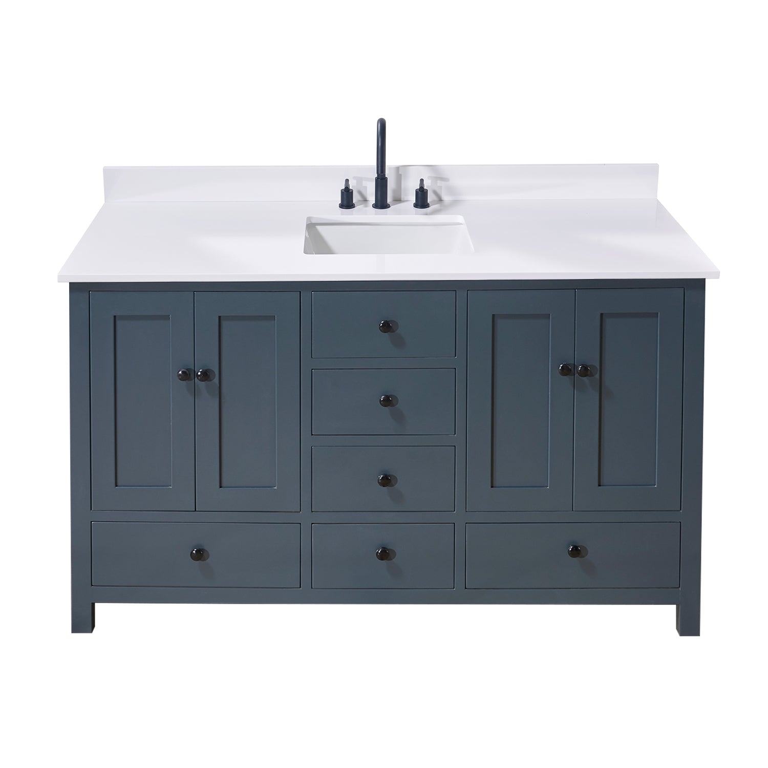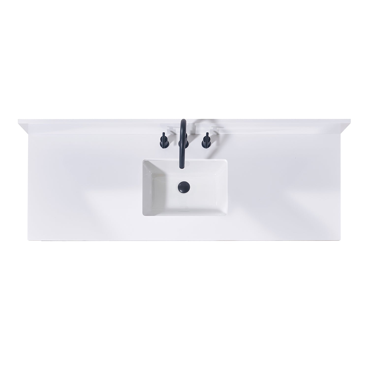 61" Composite Stone Vanity Top in Snow White with Single White Sink