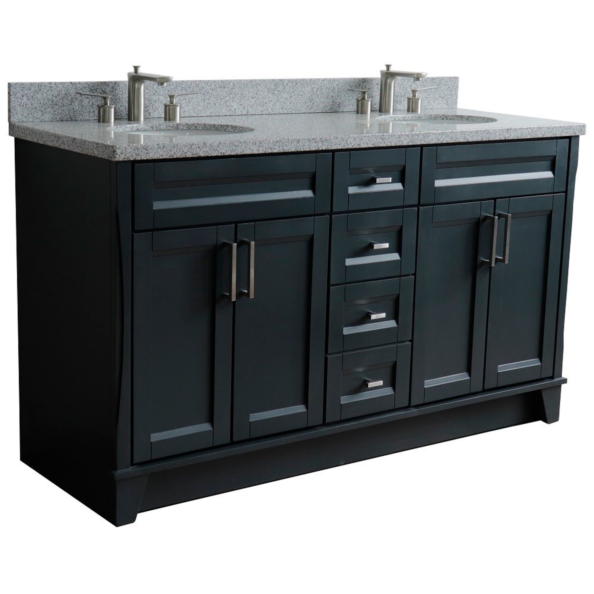 61" Double sink vanity in Dark Gray finish and Gray granite and oval sink