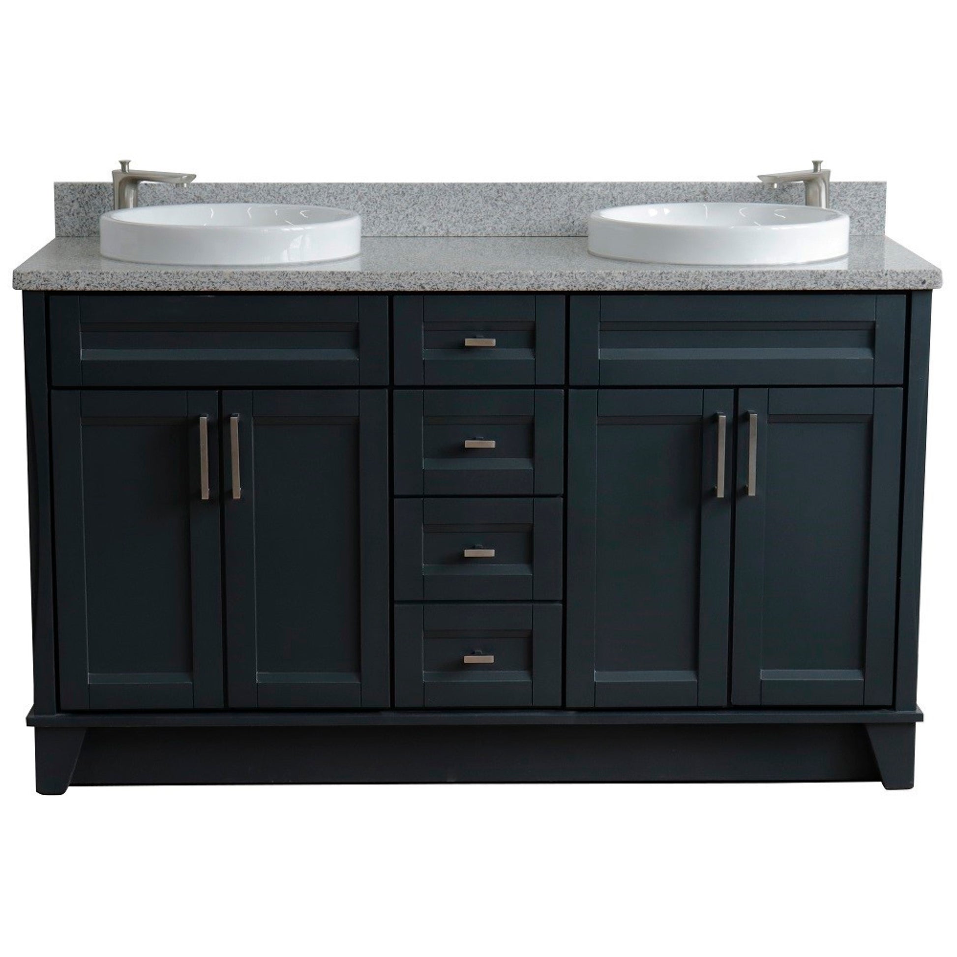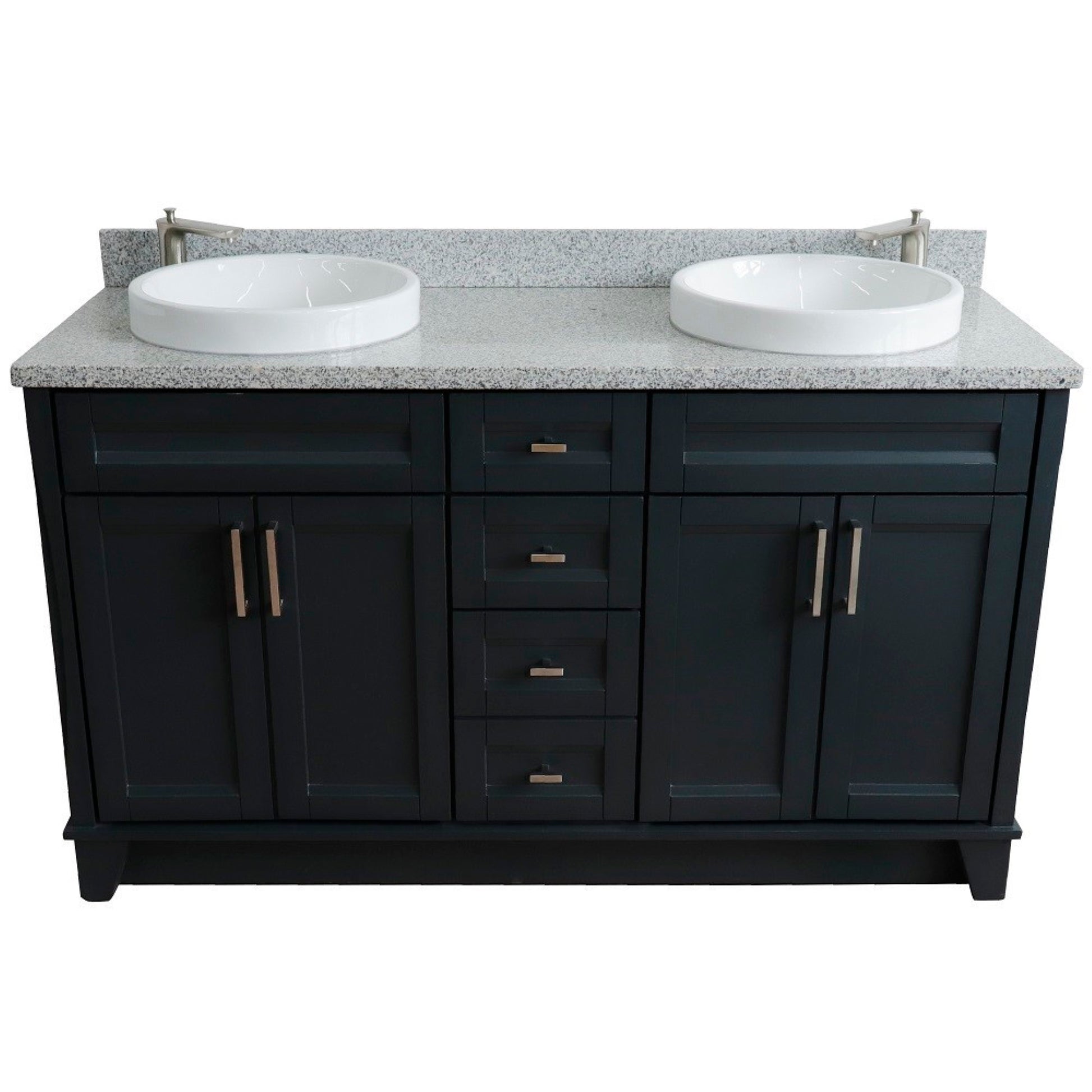 61" Double sink vanity in Dark Gray finish and Gray granite and round sink