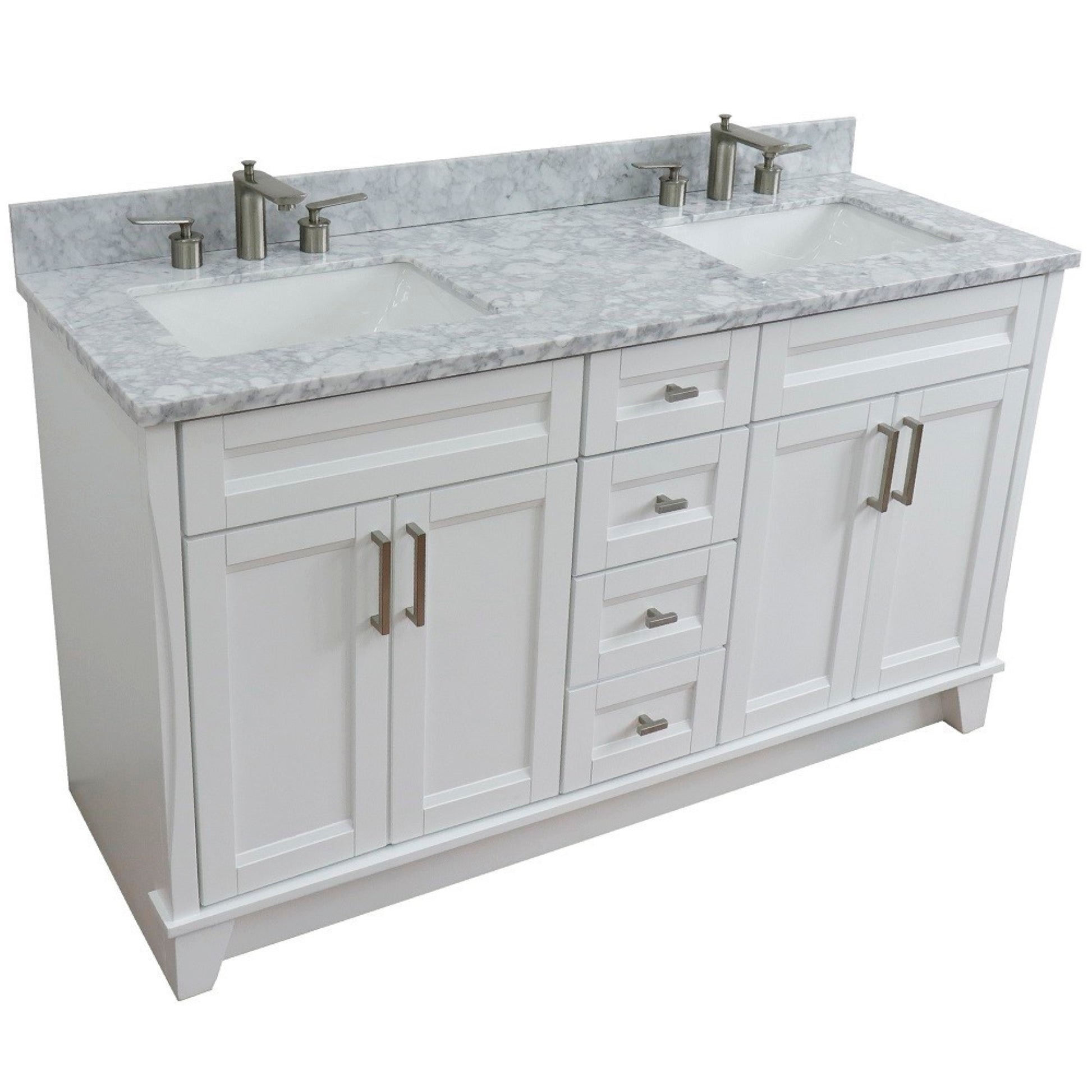 61" Double sink vanity in White finish and White Carrara marble and rectangle sink