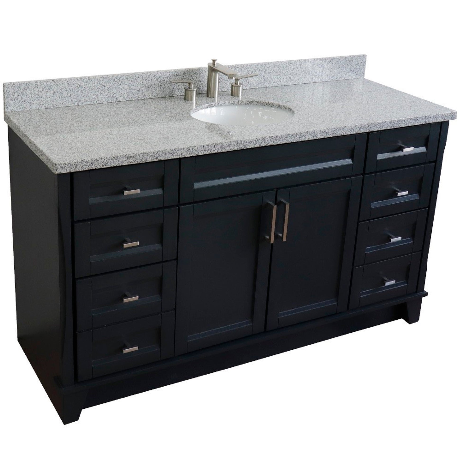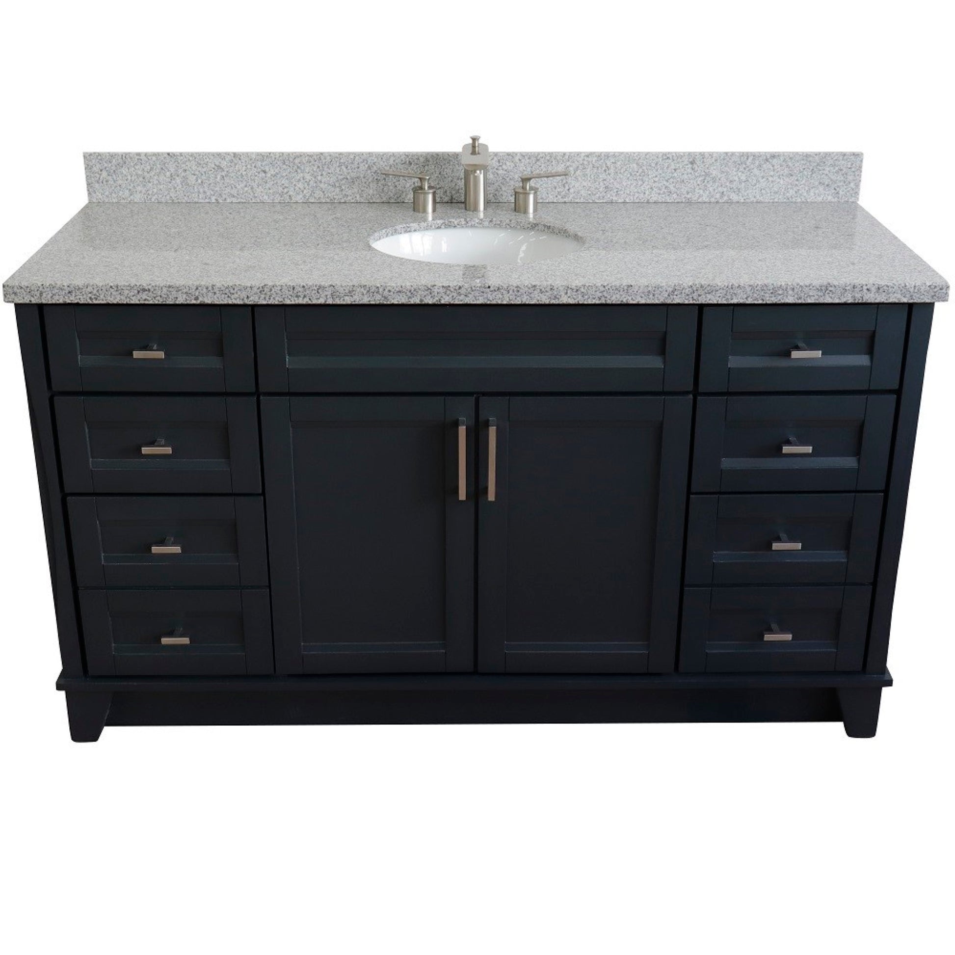 61" Single sink vanity in Dark Gray finish and Gray granite and oval sink