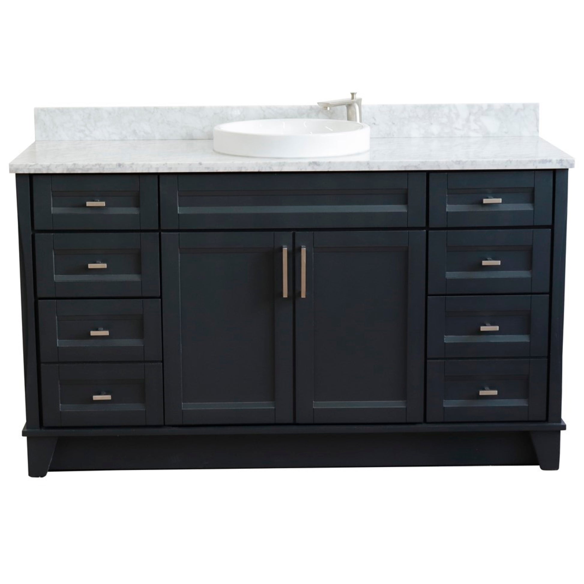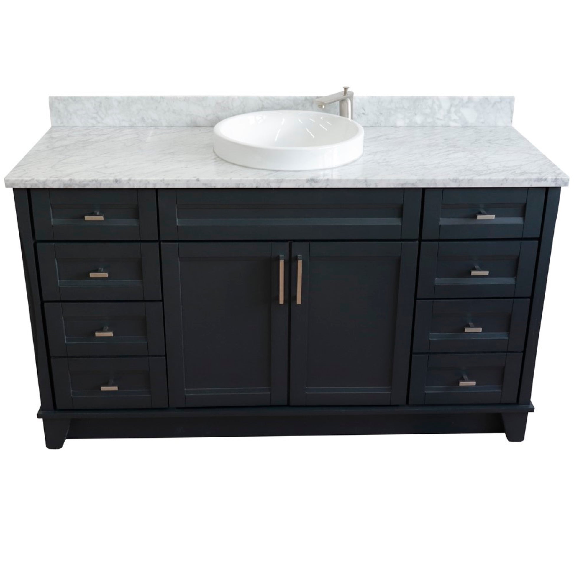 61" Single sink vanity in Dark Gray finish and White Carrara marble and round sink