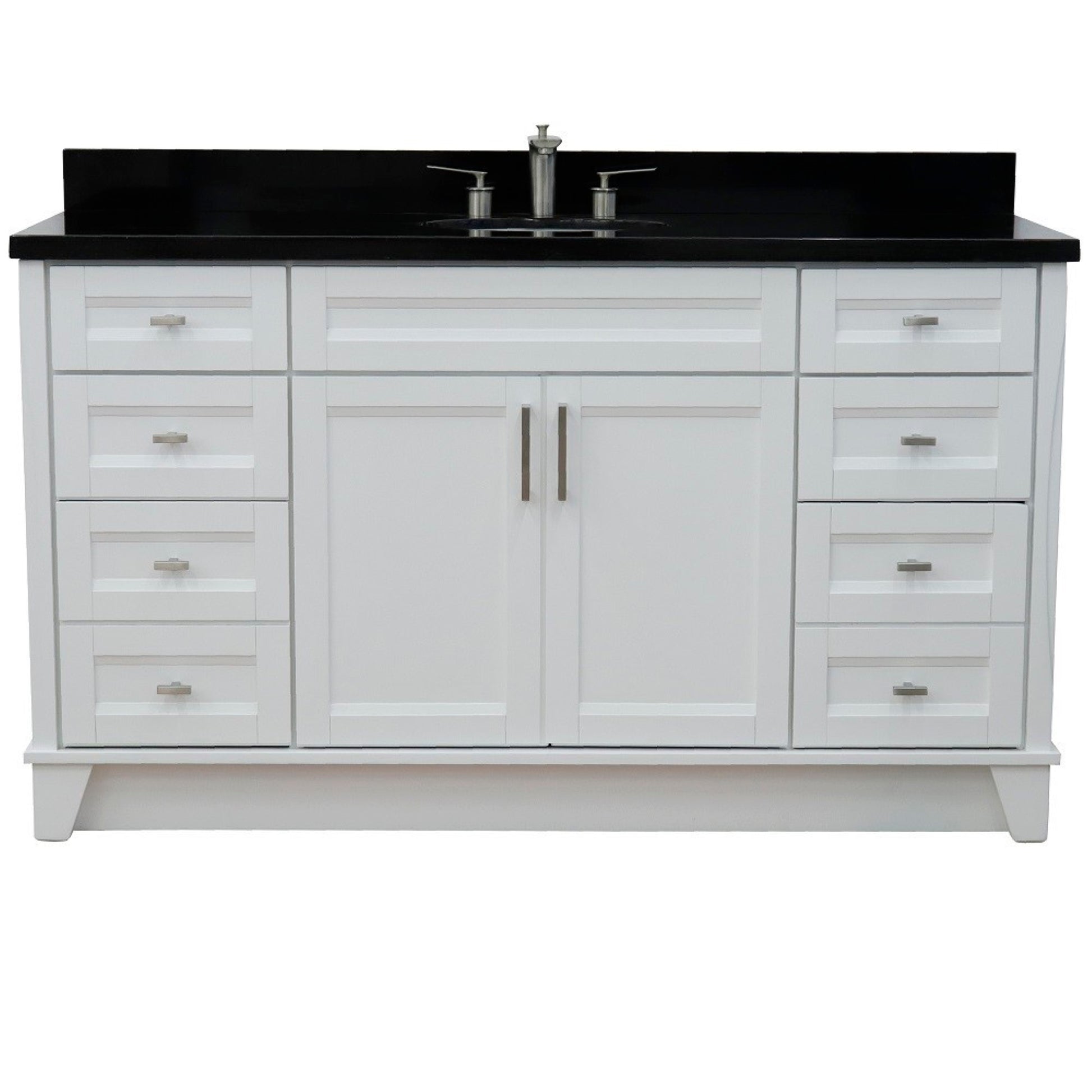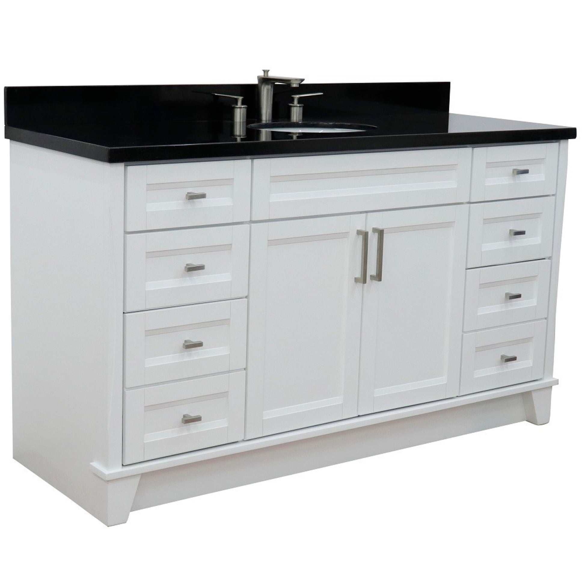 61" Single sink vanity in White finish and Black galaxy granite and oval sink