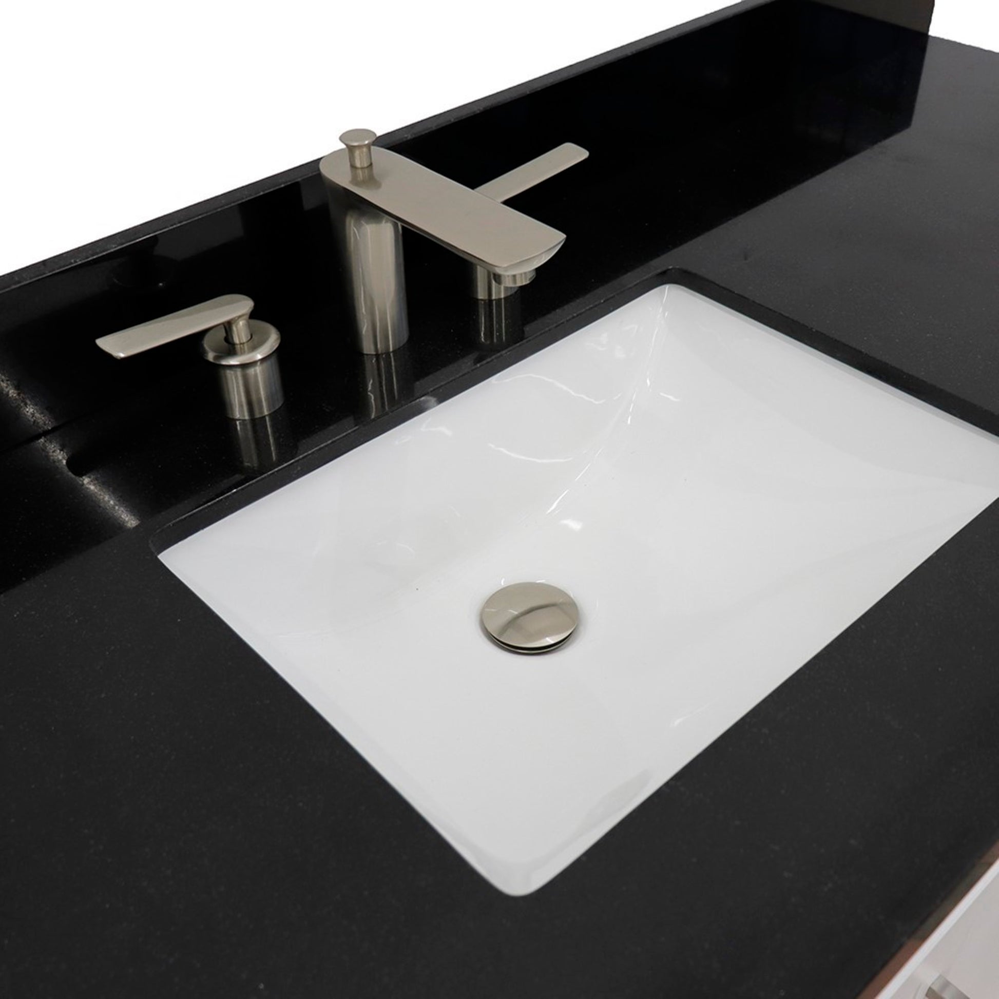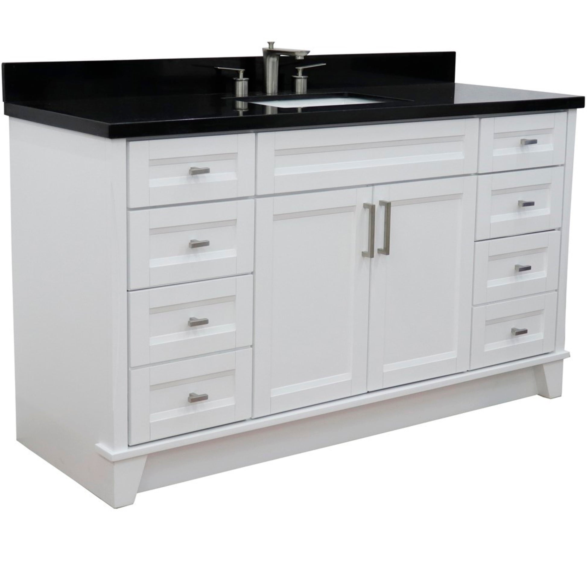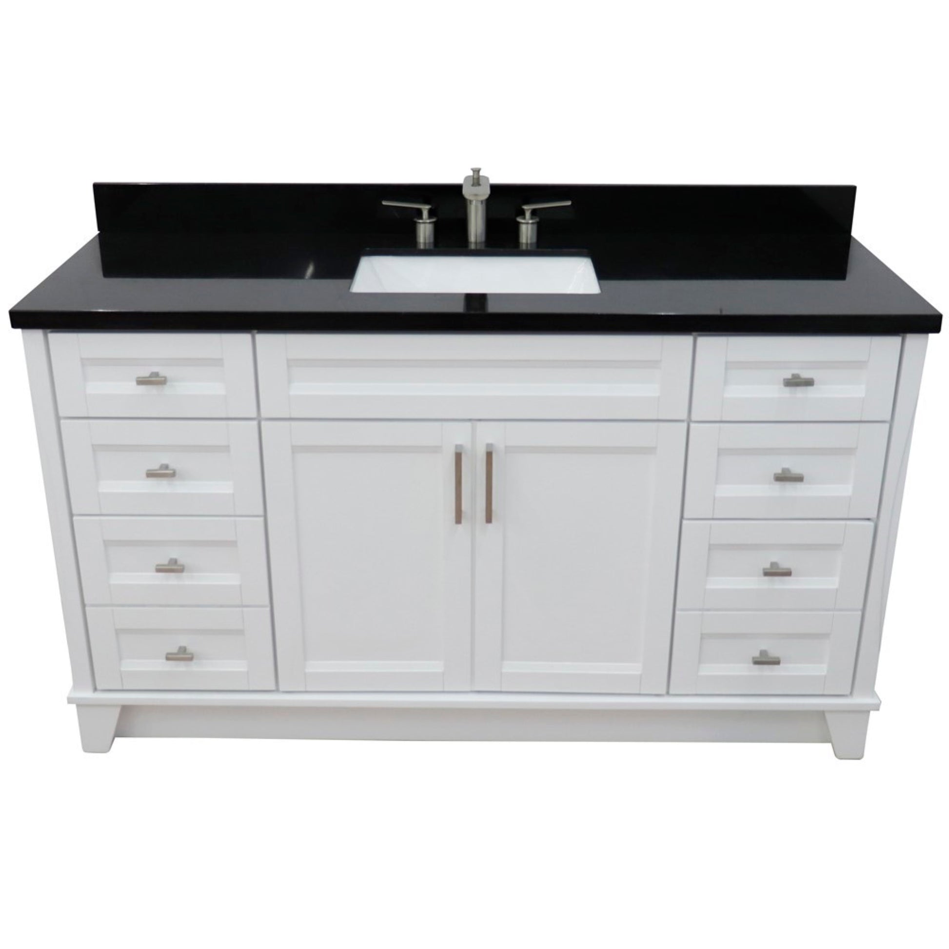 61" Single sink vanity in White finish and Black galaxy granite and rectangle sink