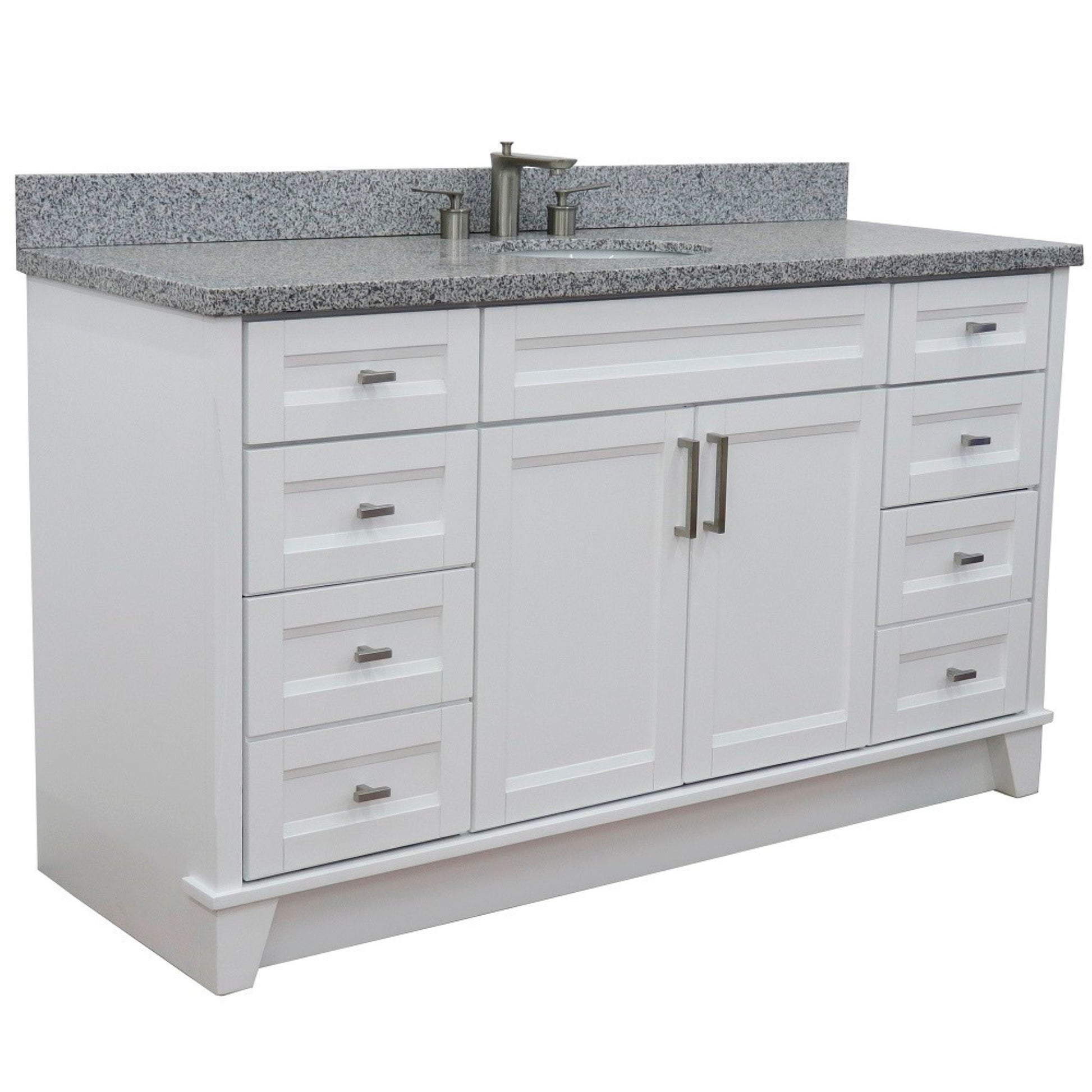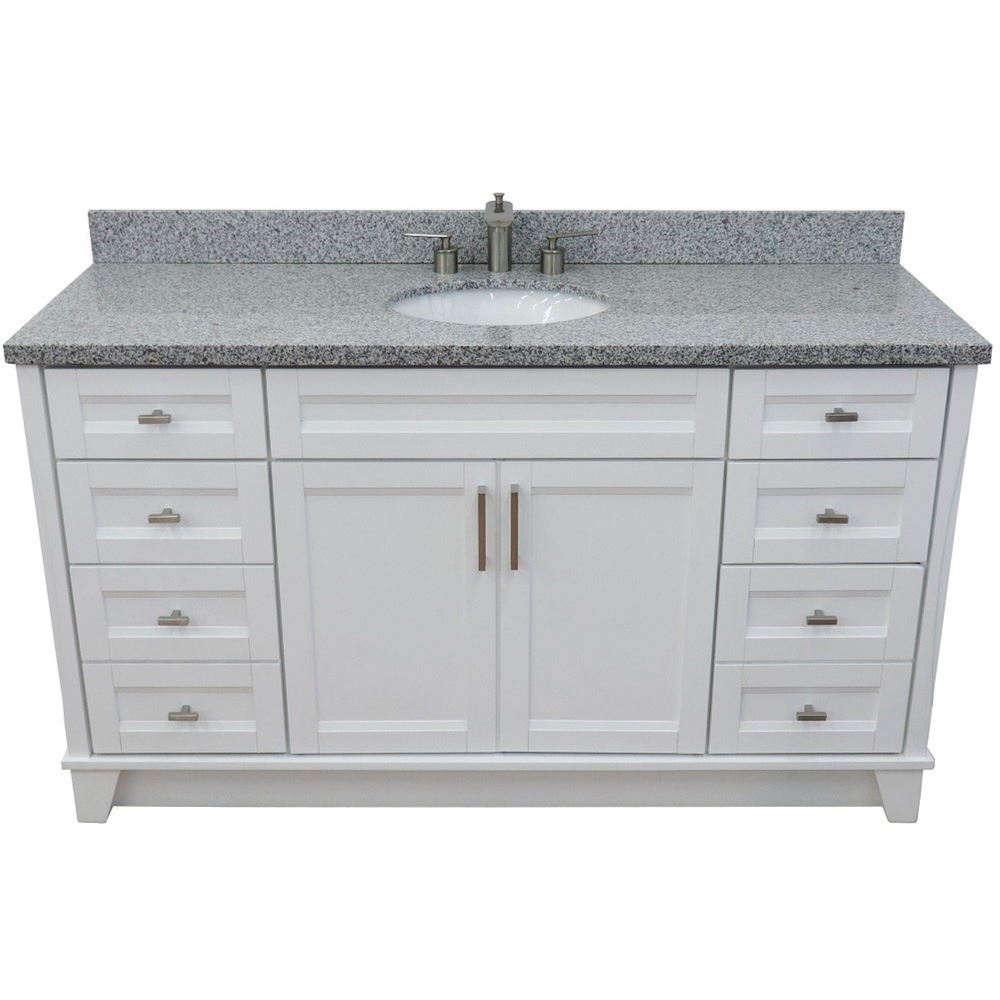 61" Single sink vanity in White finish and Gray granite and oval sink