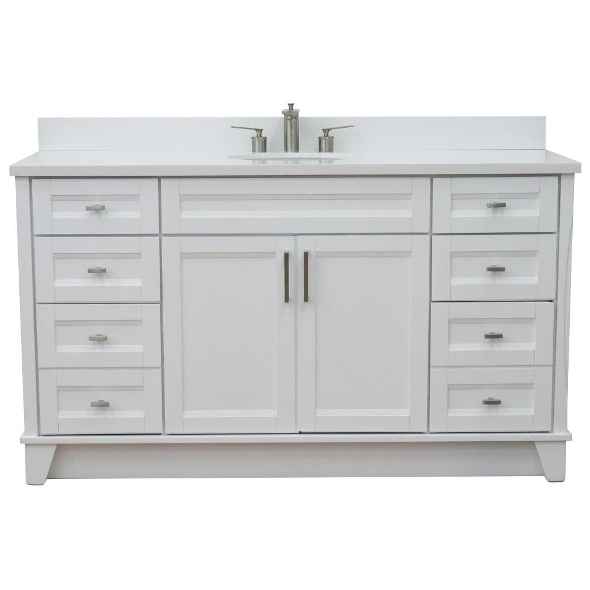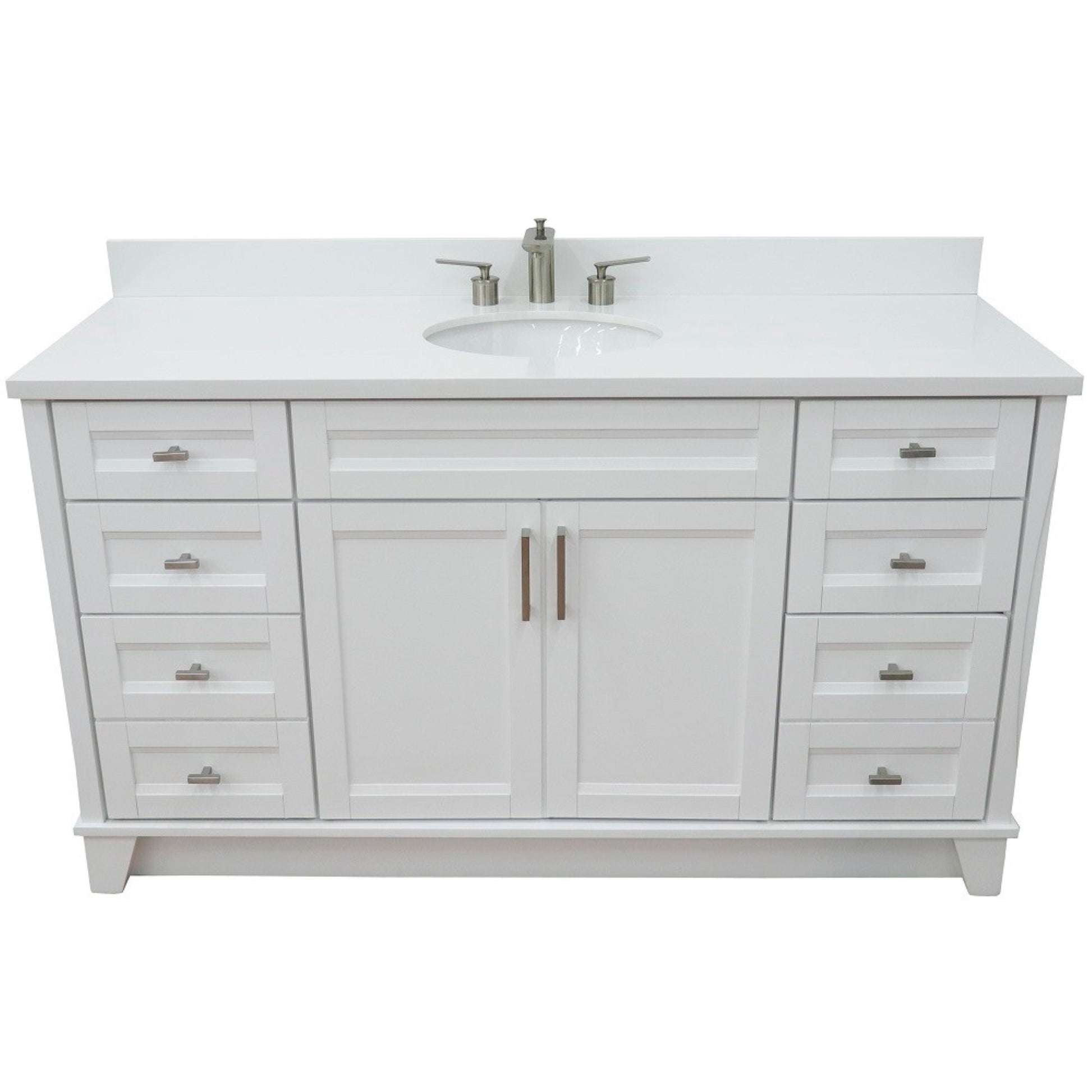 61" Single sink vanity in White finish and White engineered stone and oval sink