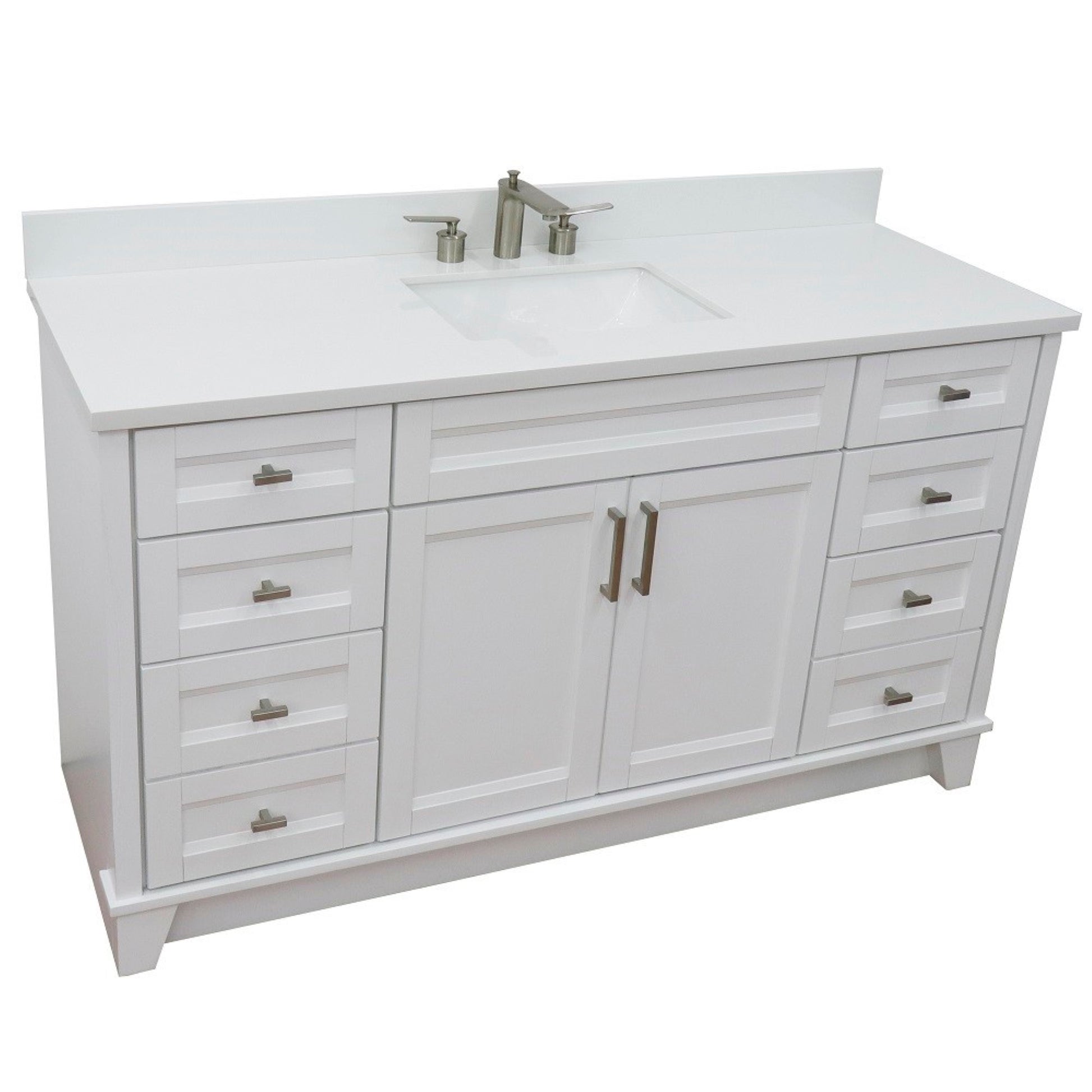 61" Single sink vanity in White finish and White engineered stone and rectangle sink