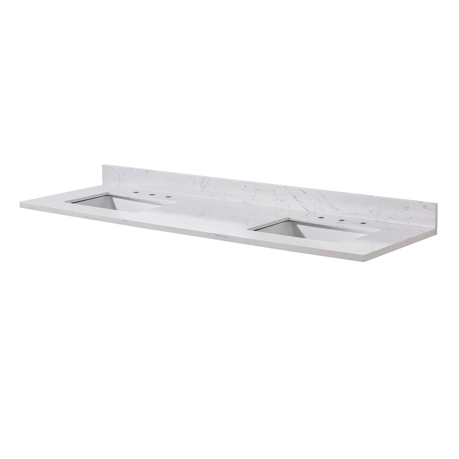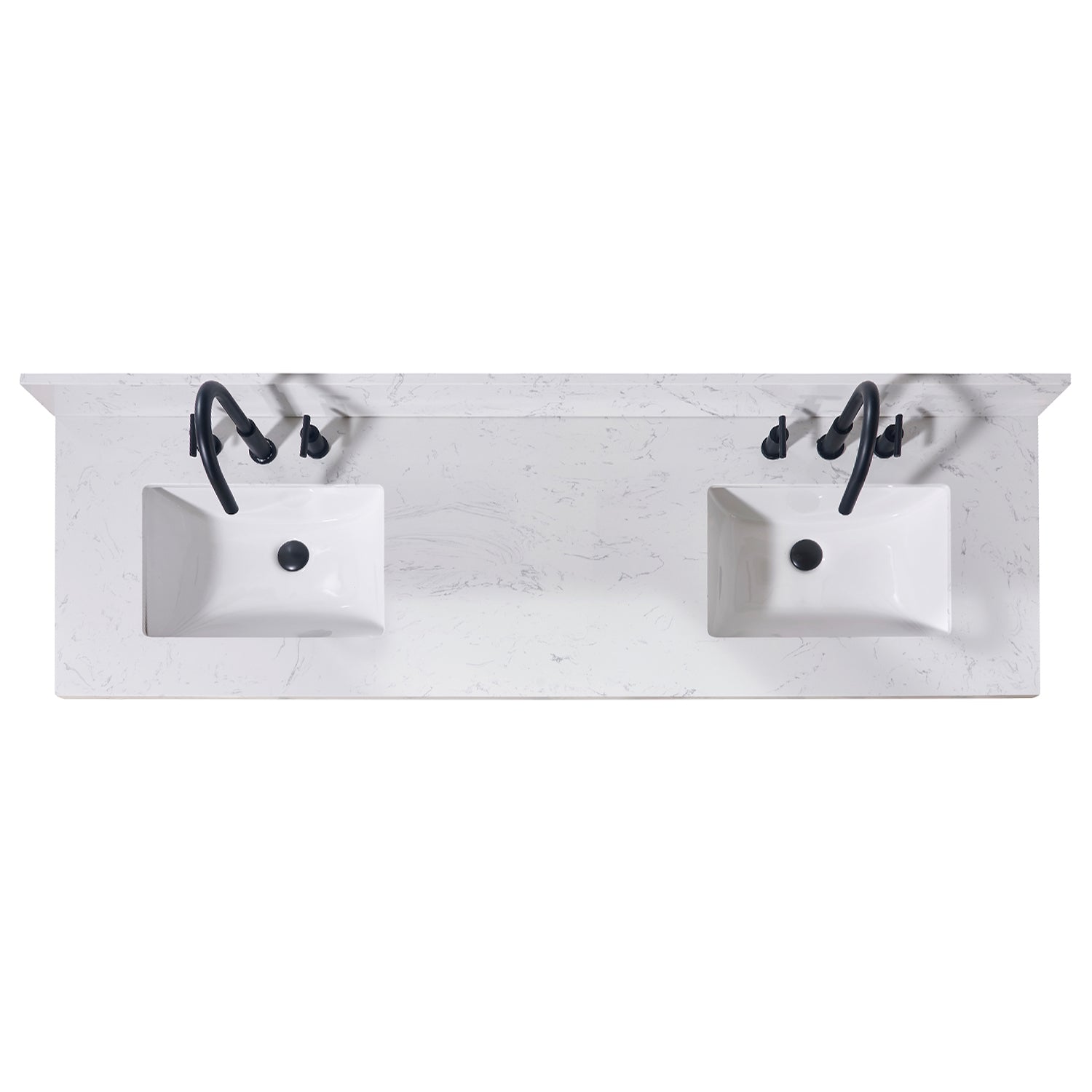 73" Composite Stone Vanity Top in Aosta White with White Sink