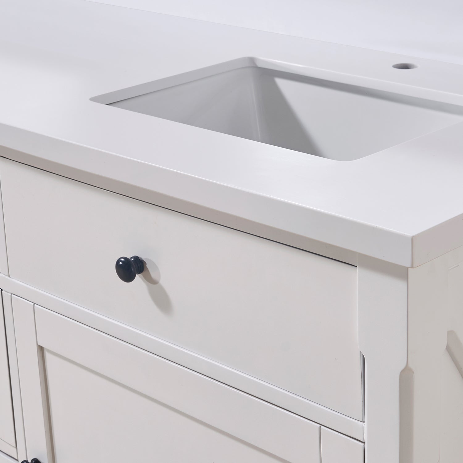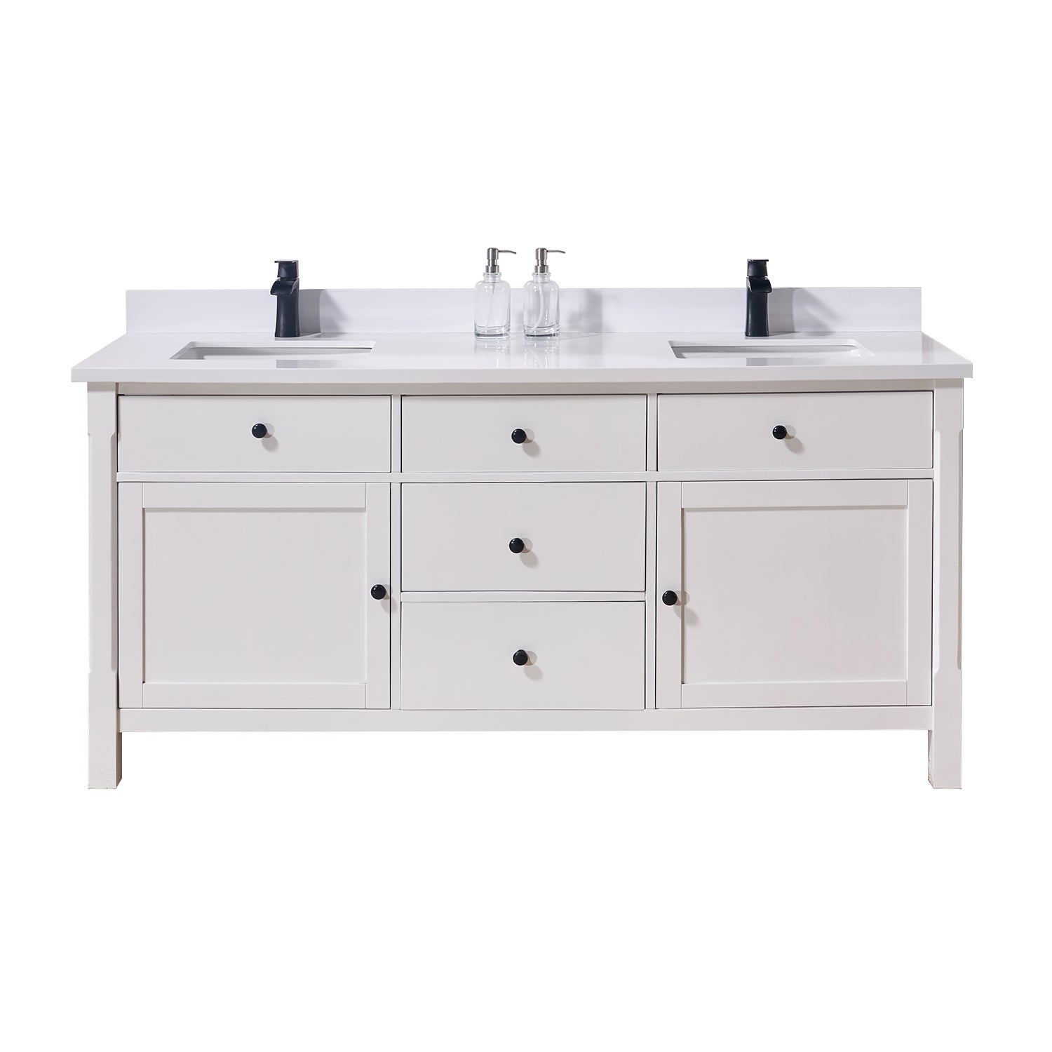 73" Composite Stone Vanity Top in Snow White with White Sink