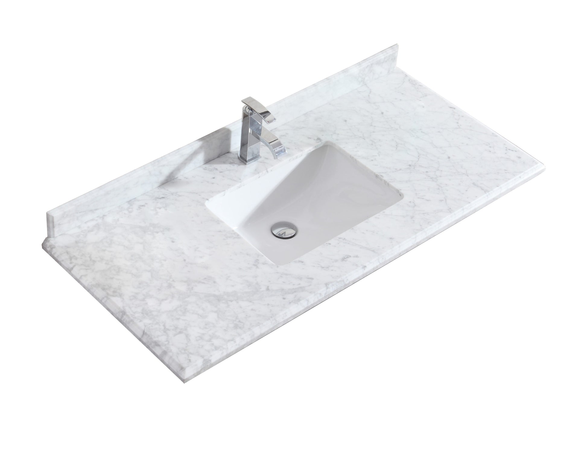 Forever 48" Single Hole White Carrara Marble Countertop with Rectangular Ceramic Sink